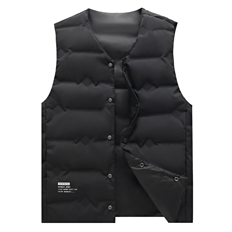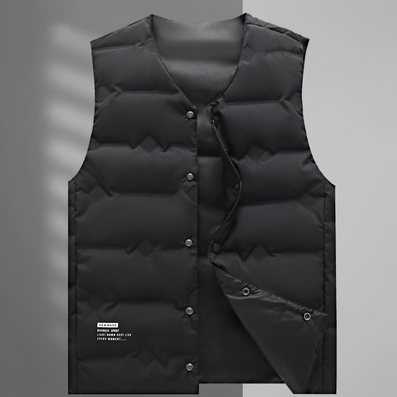 新款男士羽绒马甲秋冬加厚保暖爸爸装中老年V领背心内外穿白鸭绒