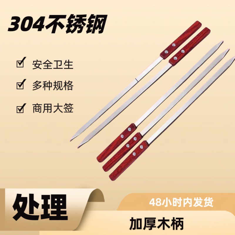 商用不锈钢烧烤商用大号签子木柄烧烤大串签子扁签用具工配件烤针
