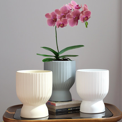 北欧花盆陶瓷带托盘多肉郁金香蝴蝶兰梦香兰专用个性绿植盆清仓