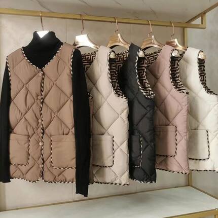 2025秋冬新轻薄羽绒棉马甲女短款小香风保暖背心圆领时尚马夹外穿