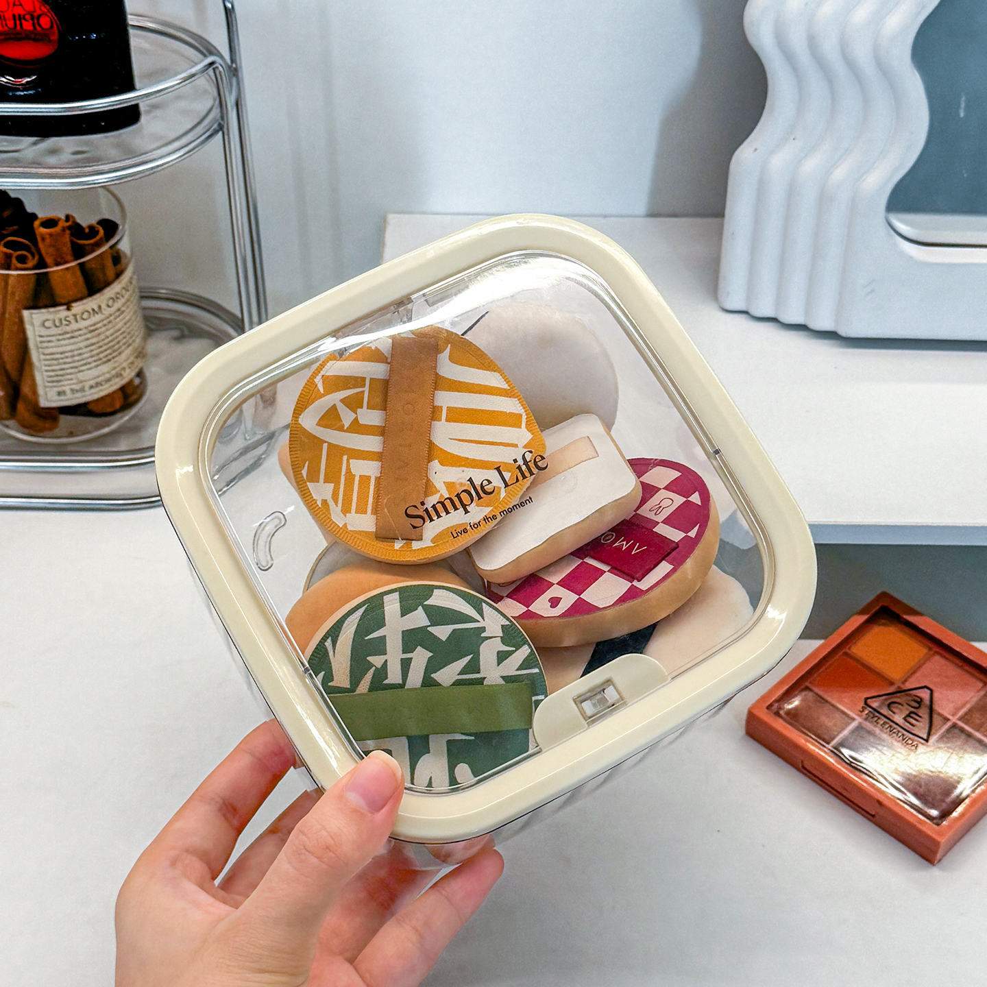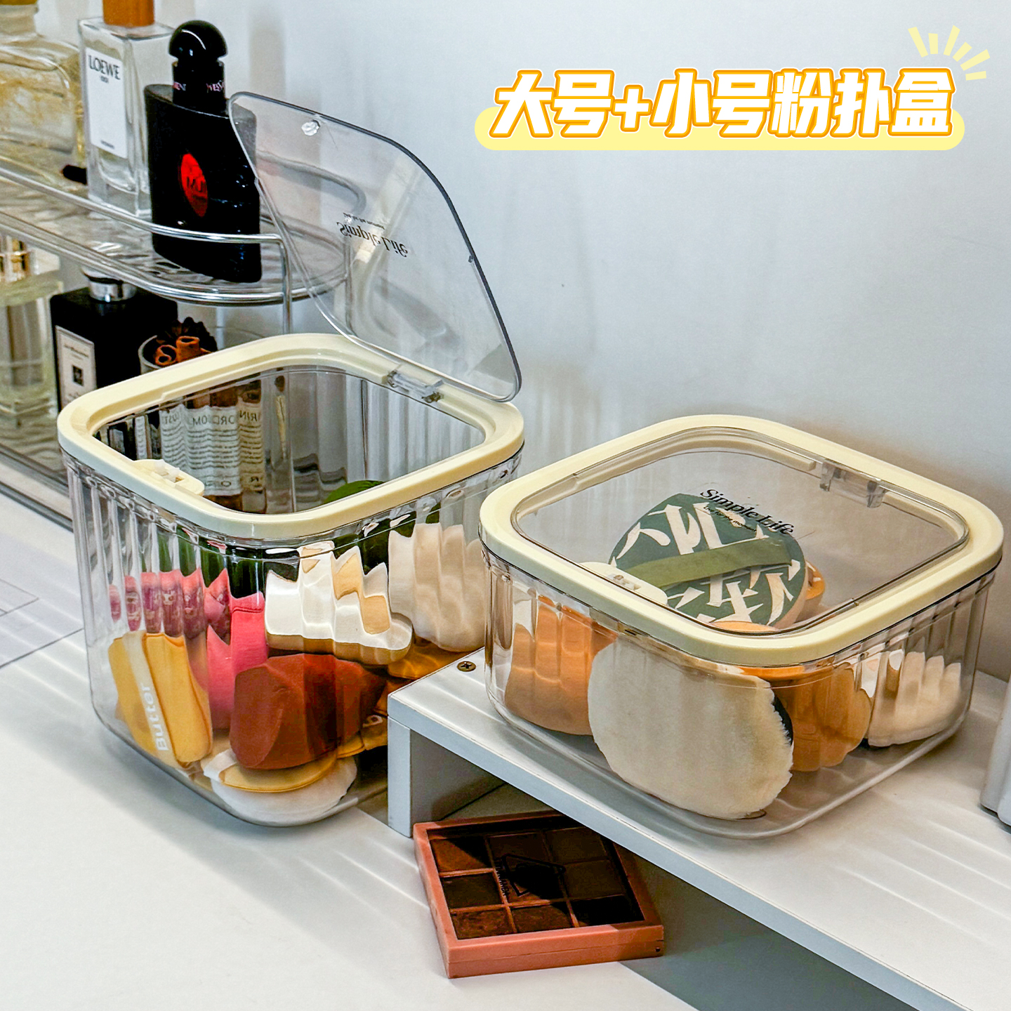 粉扑收纳盒桌面高级透明防尘大容量美妆蛋化妆品护肤品小样置物架