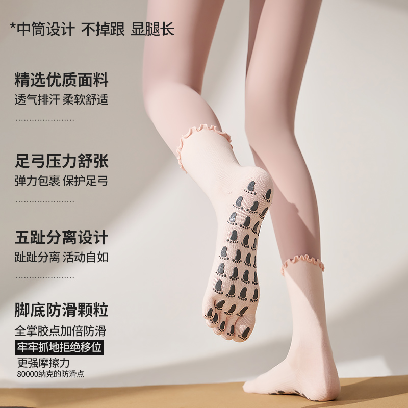秋冬运动瑜伽袜子防滑专业女普拉提长袜室内训练专用袜2025新款