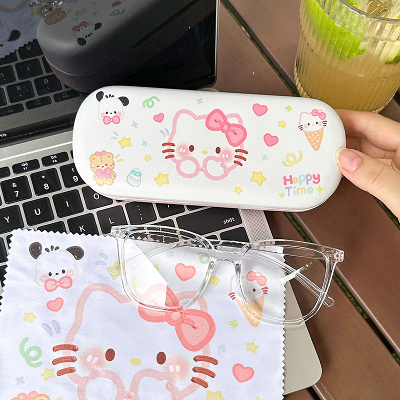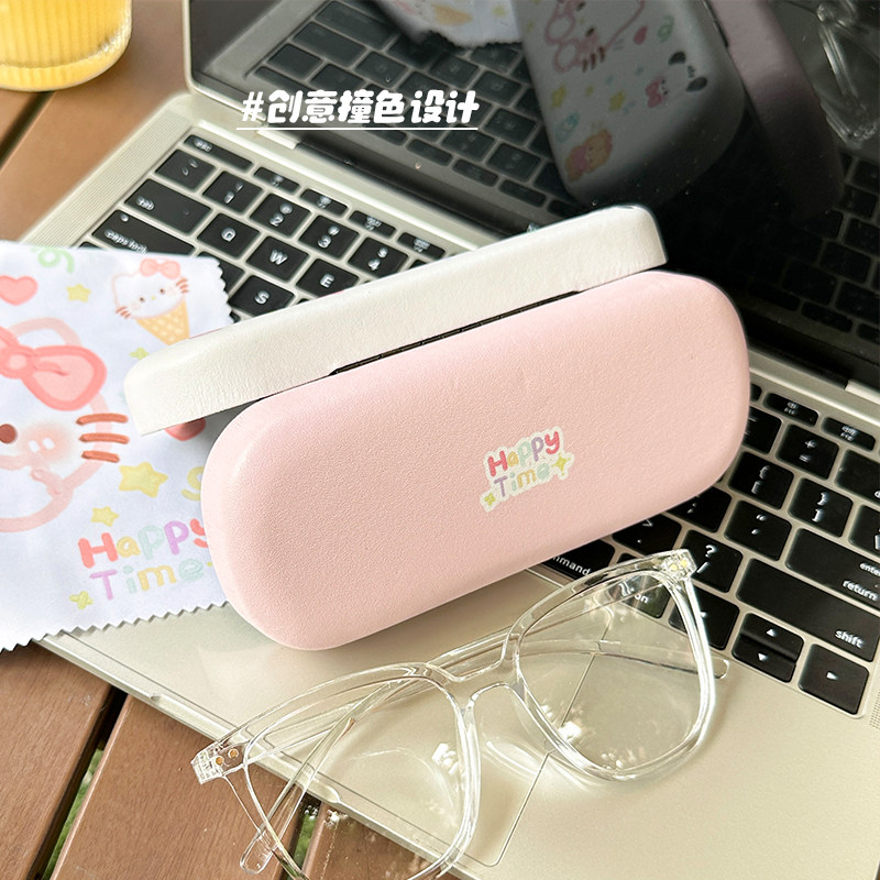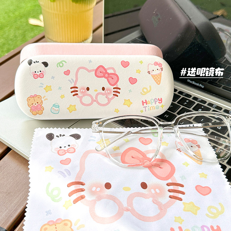 便携眼镜盒小巧可爱创意送镜布卡通少女清新防摔防压pu硬盒小猫