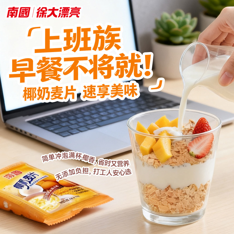 海南南国椰奶麦片懒人即食速溶燕麦片早餐冲饮营养独立小包装学生