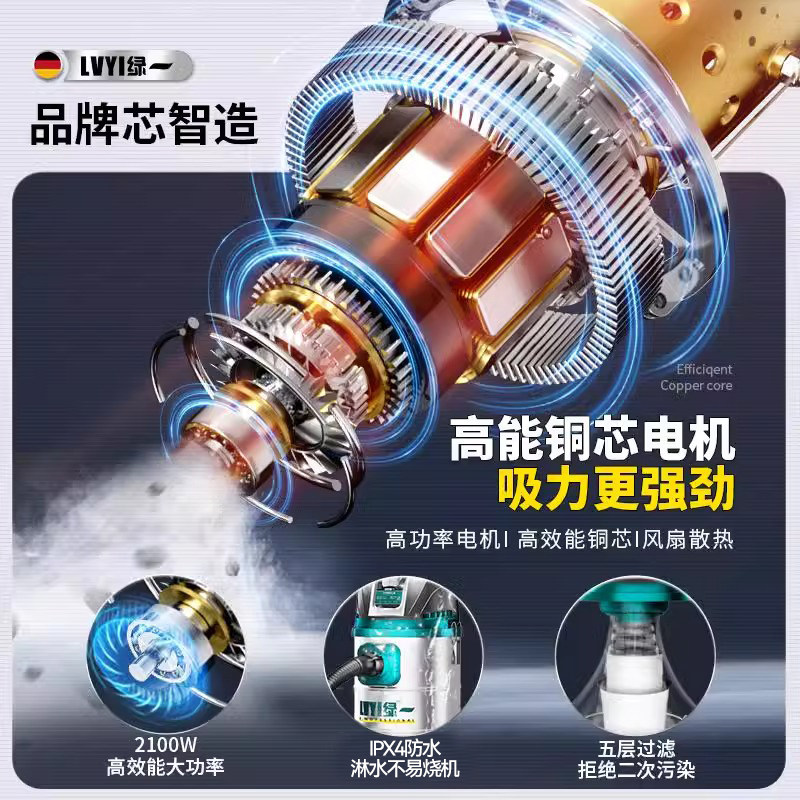 绿一吸尘器大吸力家用洗车装修开荒大功率粉尘商用工业吸尘机F