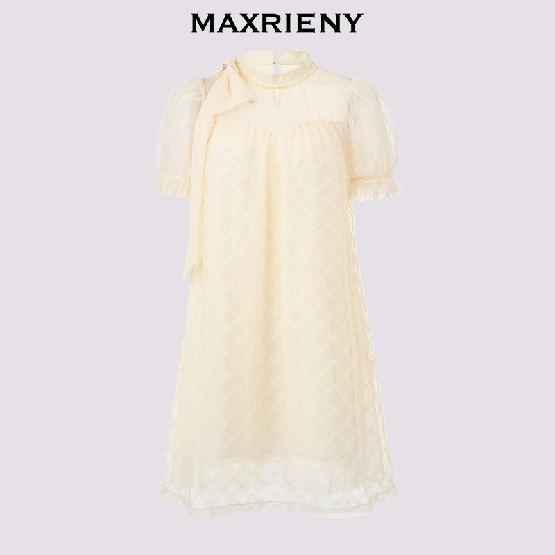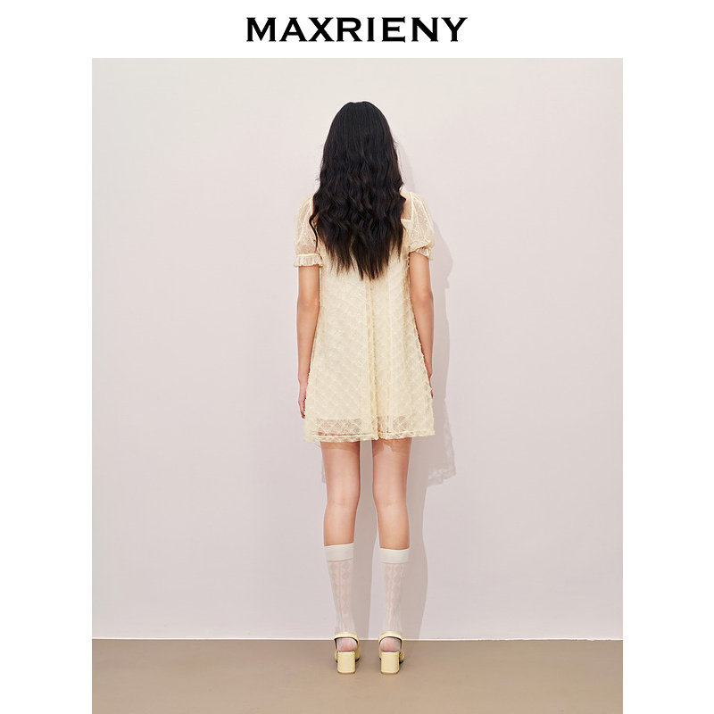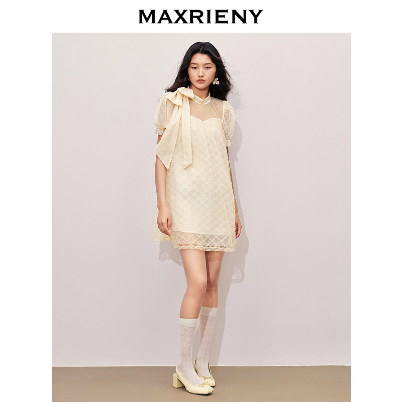 【奥莱】MAXRIENY浪漫度假风连衣裙网纱拼接泡泡袖a摆裙子