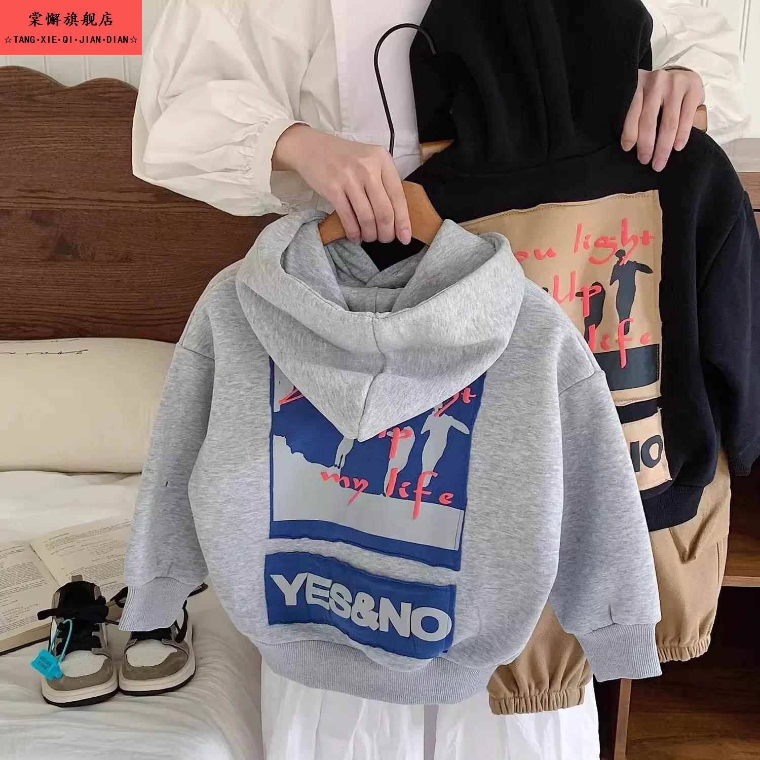 2025秋季新款童装儿童字母长袖连帽宽松卫衣男女童个性帽衫上衣潮
