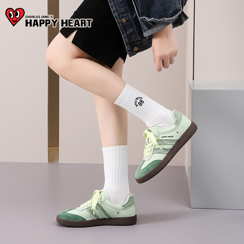 查尔斯桃心2025秋新款时尚拼色德训鞋平底百搭绿色ins风休闲鞋女
