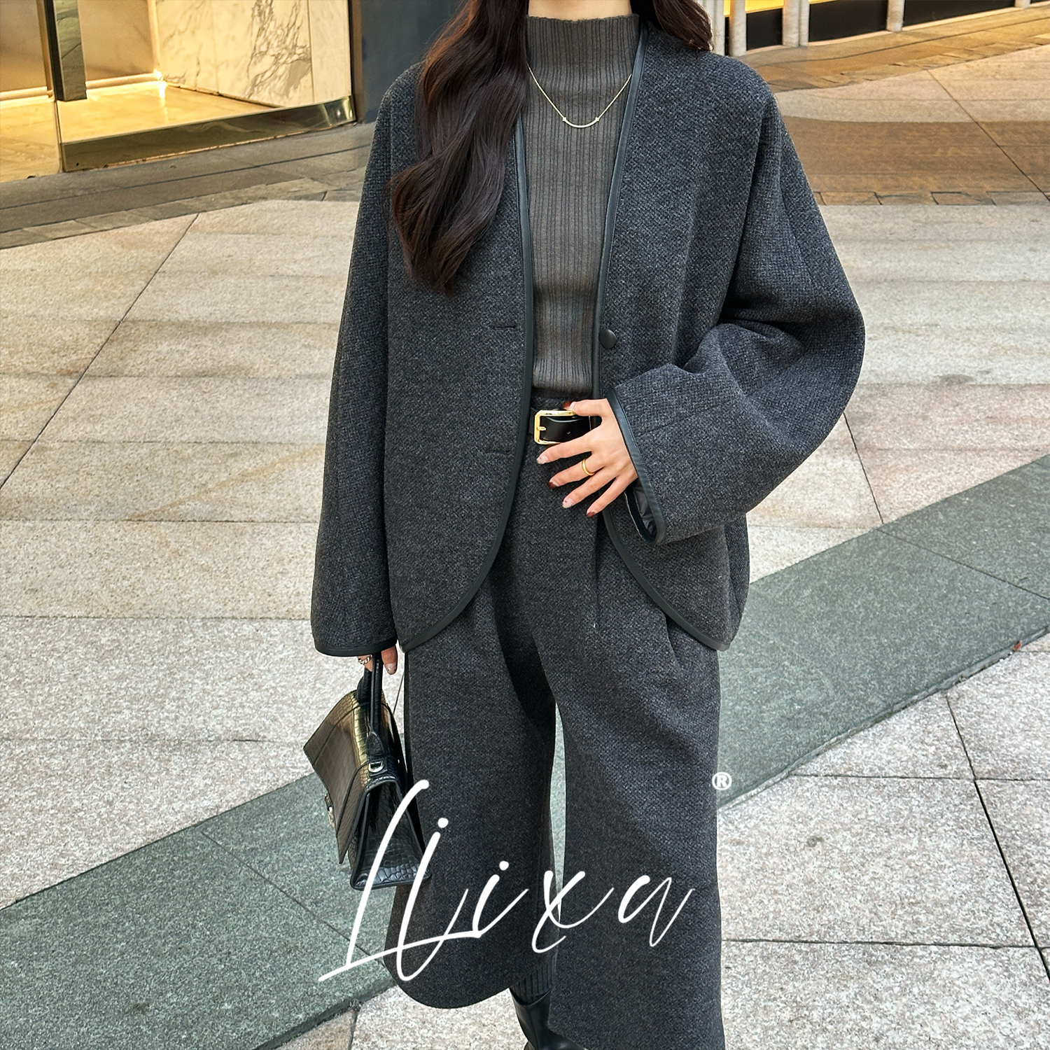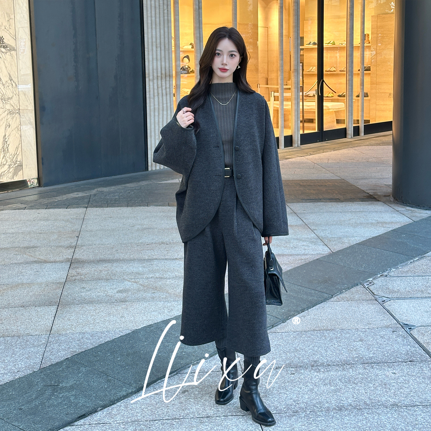 Liixu 时尚高级感气质套装女2025新款90白鸭绒外套八分阔腿裤套装