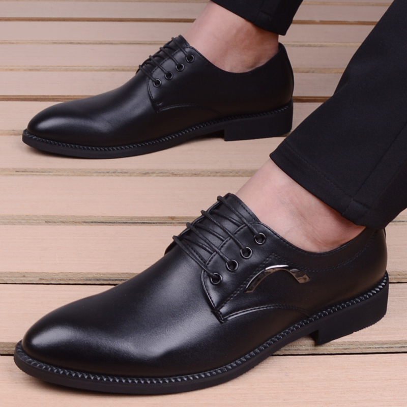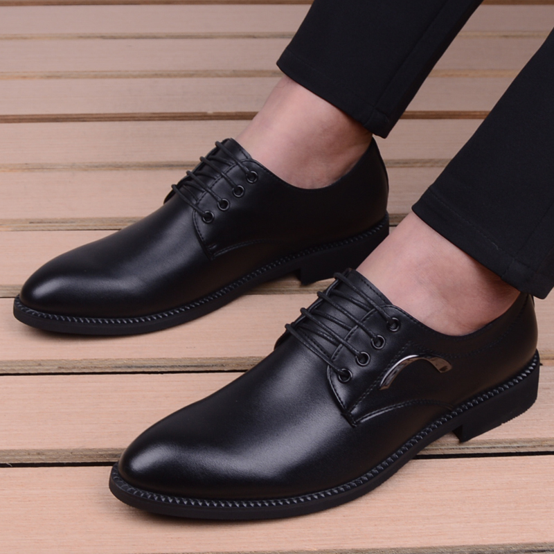 春秋尖头皮鞋男韩版英伦潮流商务黑色休闲鞋男士正装皮鞋增高男鞋
