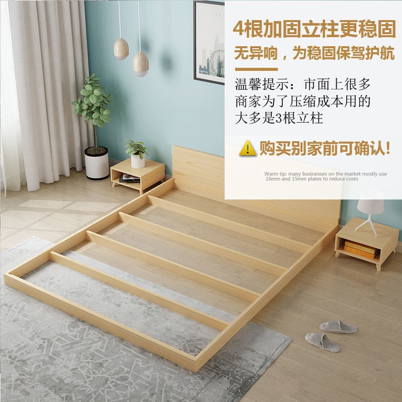 板式床现代简约1.5m1.8米实木双人床出租房1.2米单人床榻榻米落地