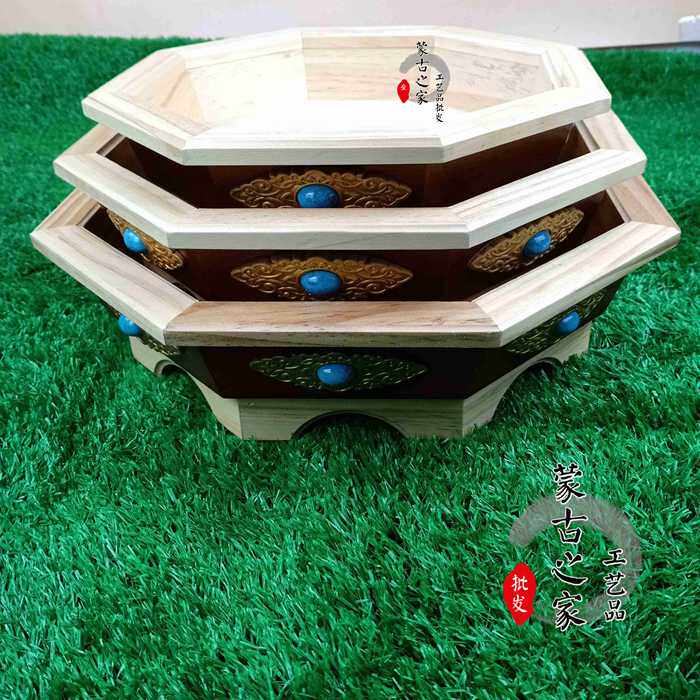 蒙古餐盘餐具少数民族用品蒙餐饭店用品木制奶食品盘八角木盘果盘