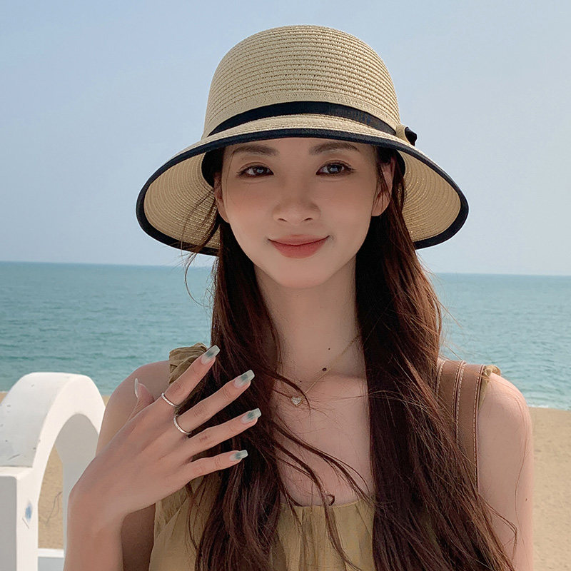 海边沙滩渔夫帽女士2025新款显脸小户外防晒遮阳帽子夏季草帽度假