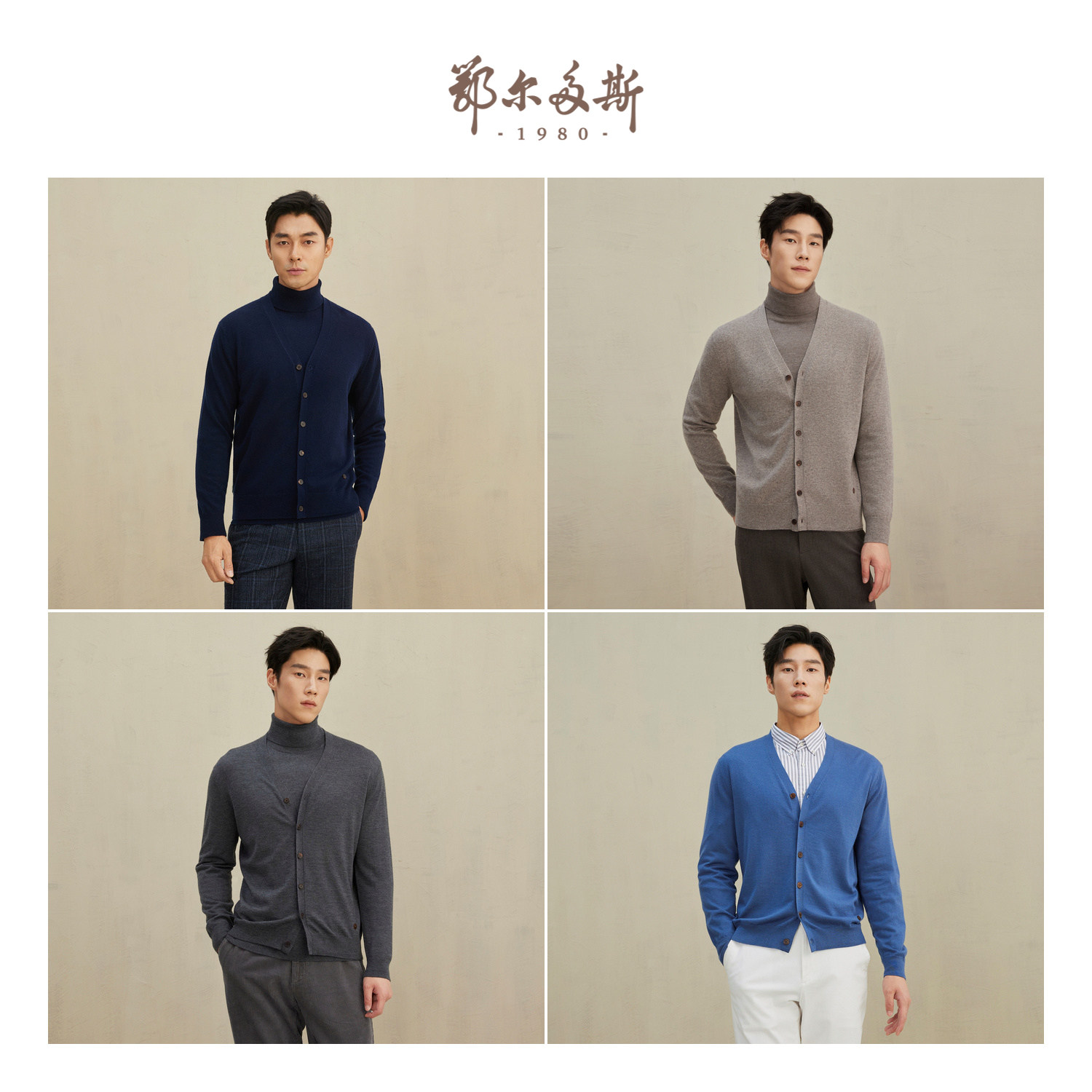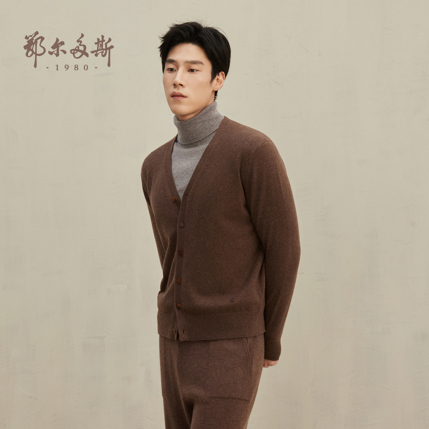 鄂尔多斯1980 V领纯羊绒男开衫保暖舒适柔软通勤针织衫商务休闲