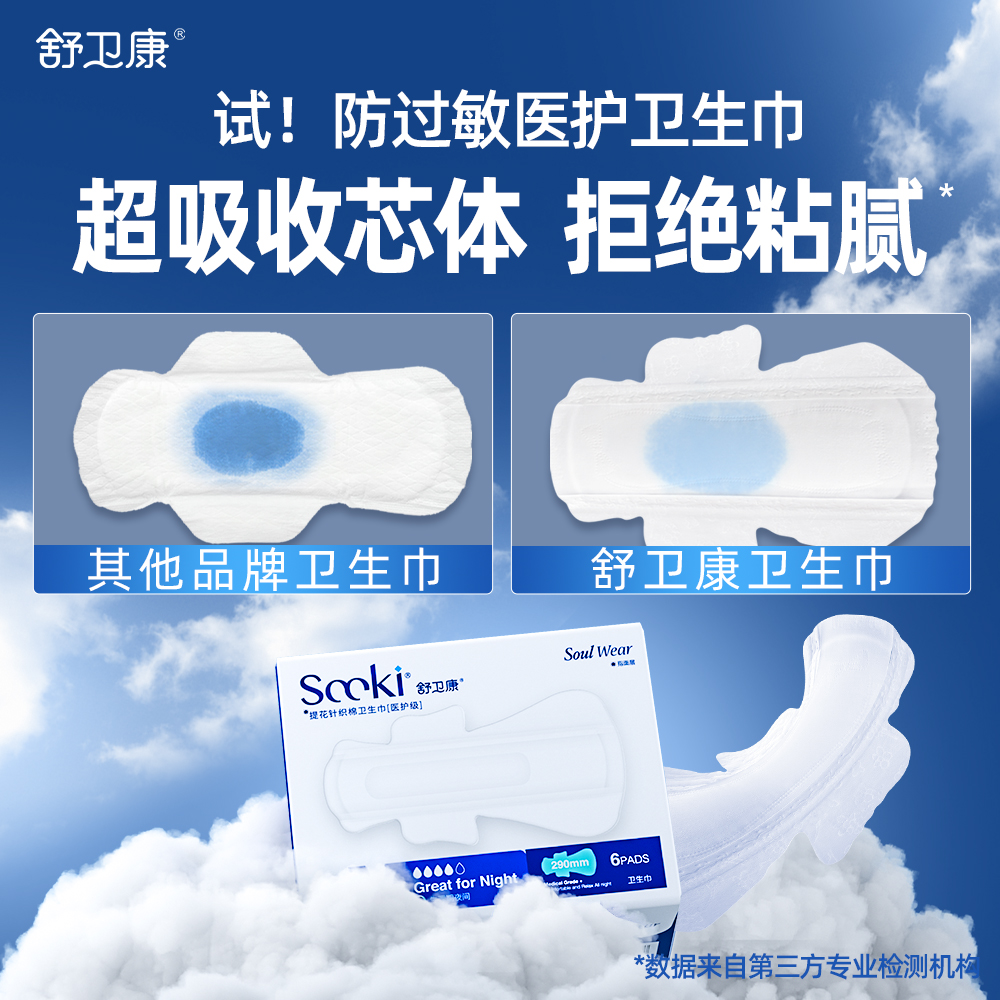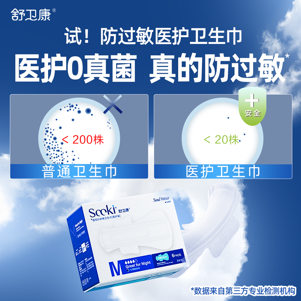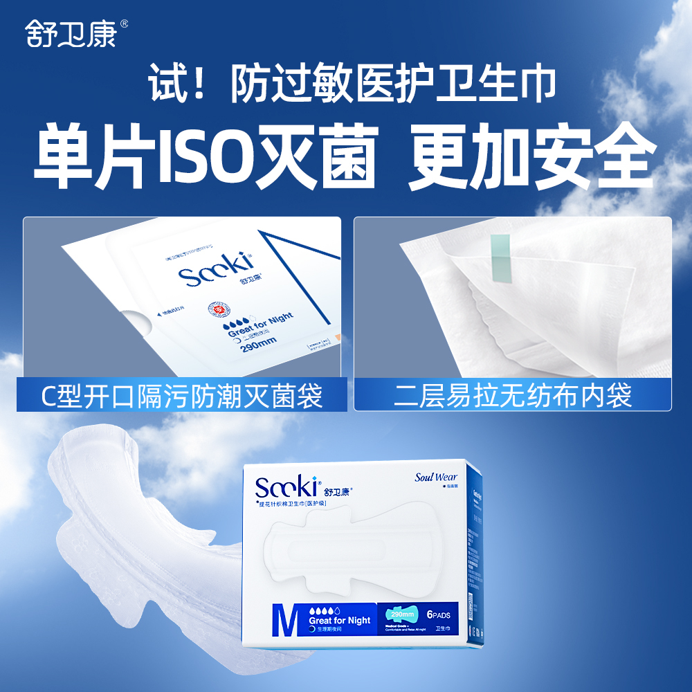 药房正品舒卫康医护级灭菌夜用卫生巾290纯棉无荧光剂不含绒毛浆