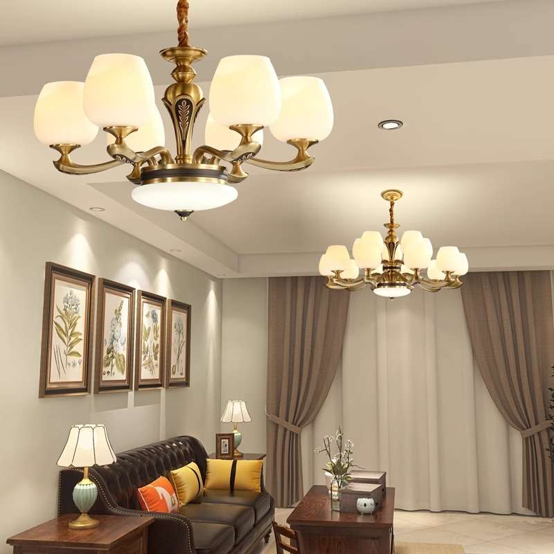 全铜美式客厅吊灯家用奢华大气欧式餐厅灯现代简约复古仿云石灯具