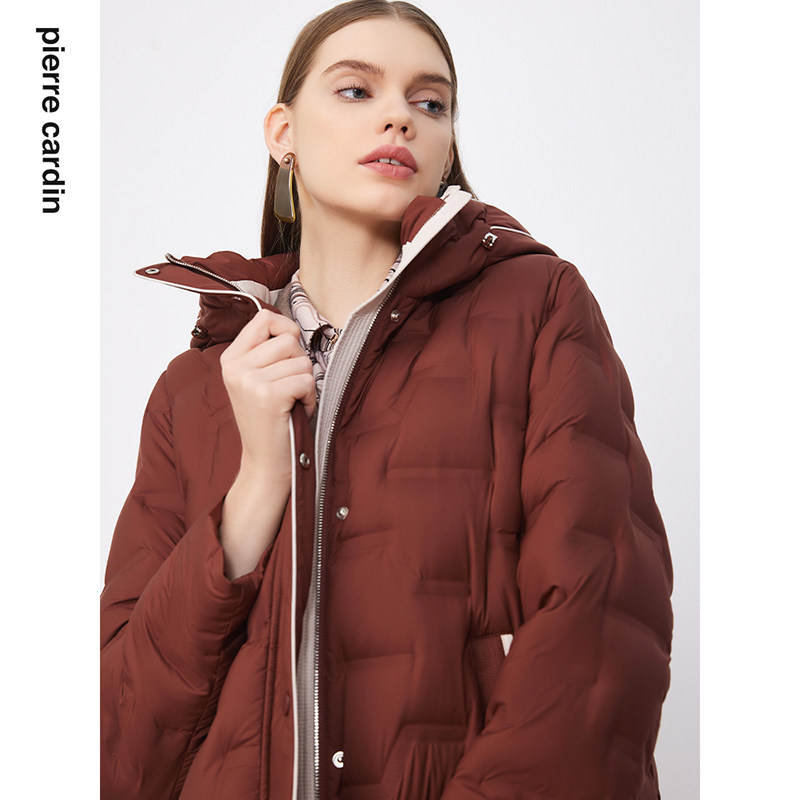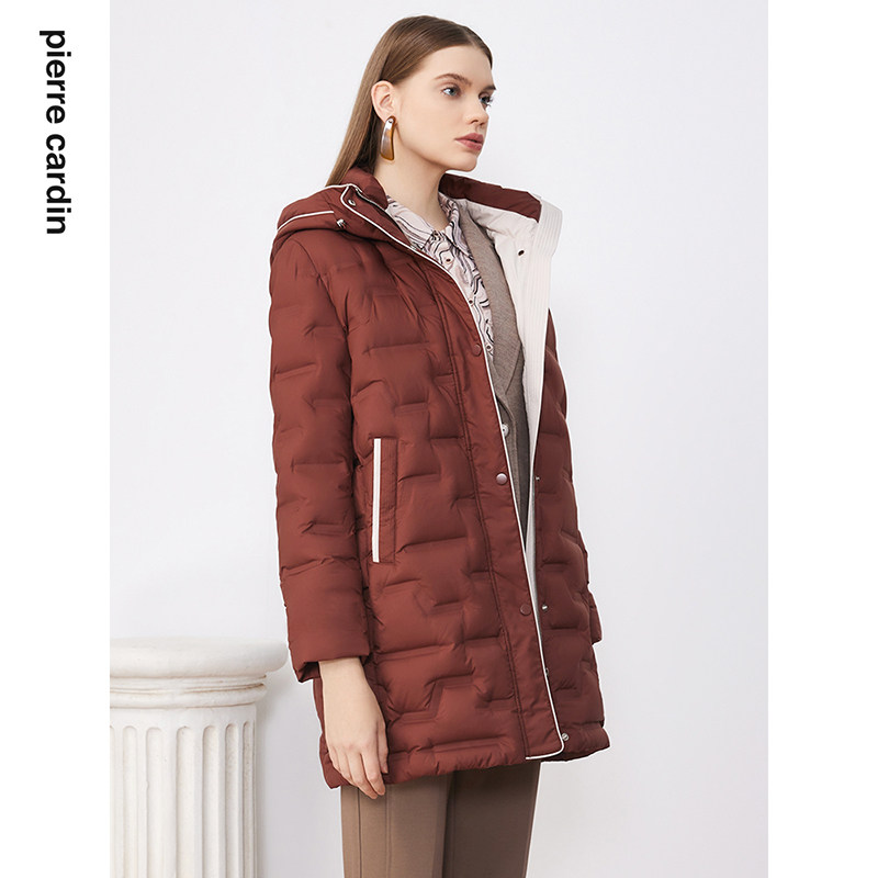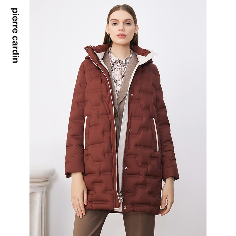 商场同款皮尔卡丹女装羽绒服咖色中款加厚日常通勤羽绒外套