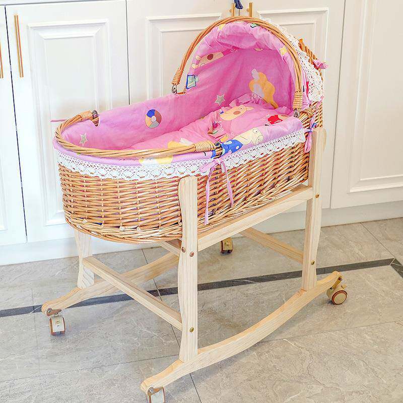 藤编婴儿摇篮床儿外出便携手提篮车载安抚睡篮宝宝床摇篮实木
