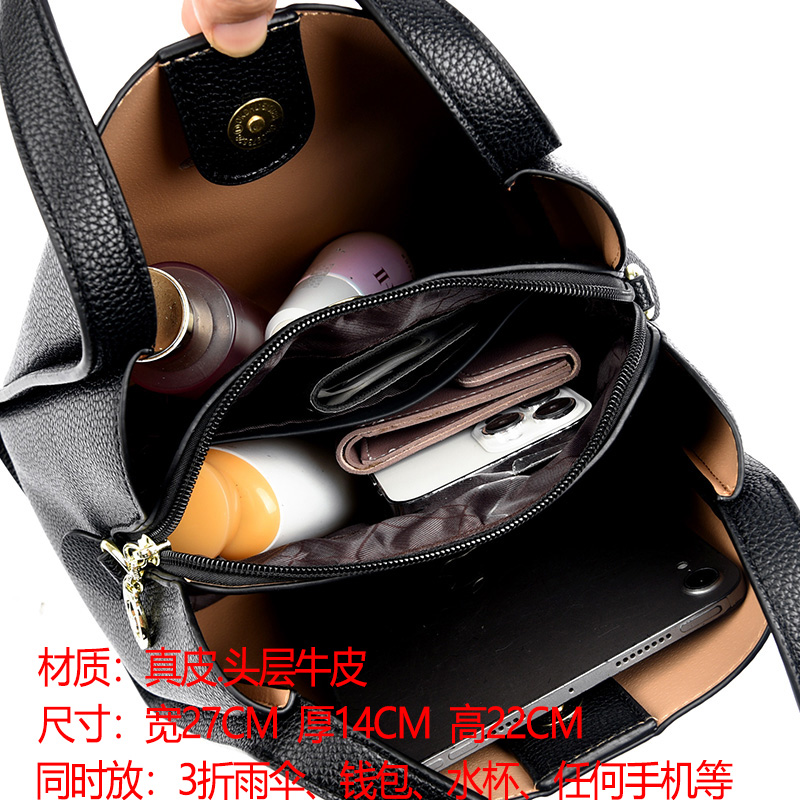 品牌真皮女包女包包女士2024新款中年妈妈包水桶包女斜挎包大容量