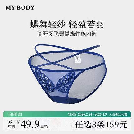 3件159|商场同款MYBODY内裤女蝴蝶性感蕾丝网纱高级感情调三角裤