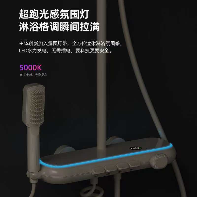 钢琴按键恒温淋浴花洒套装家用数显氛围灯浴室枪灰色增压沐浴喷头