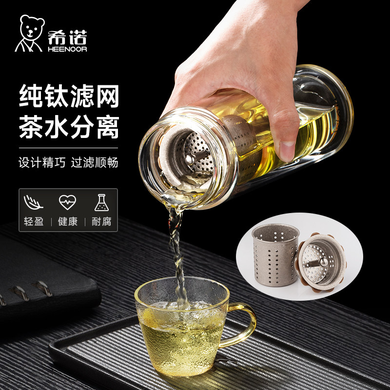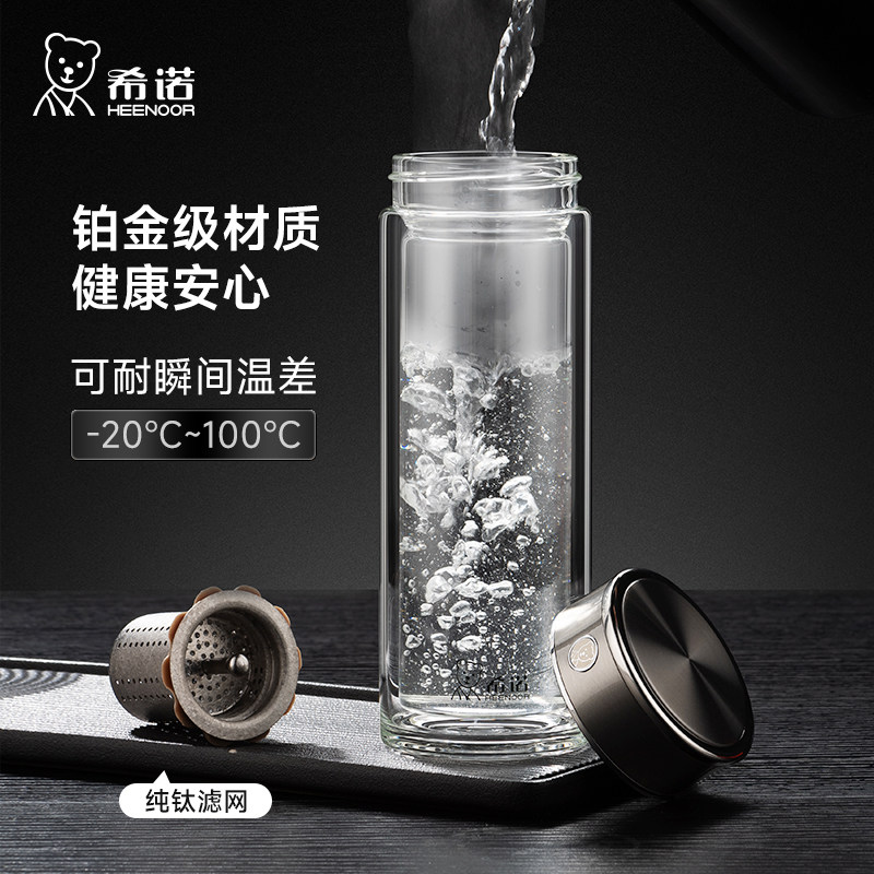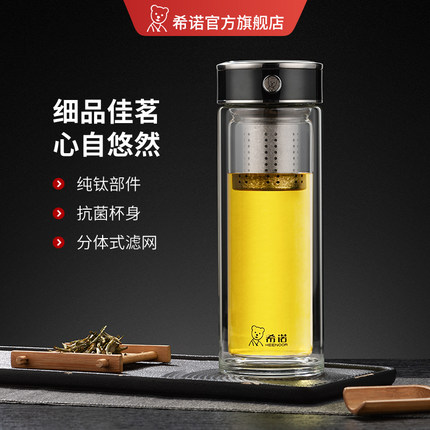 希诺双层抗菌玻璃杯新款茶水分离泡茶杯男款办公室水杯抗菌杯子女