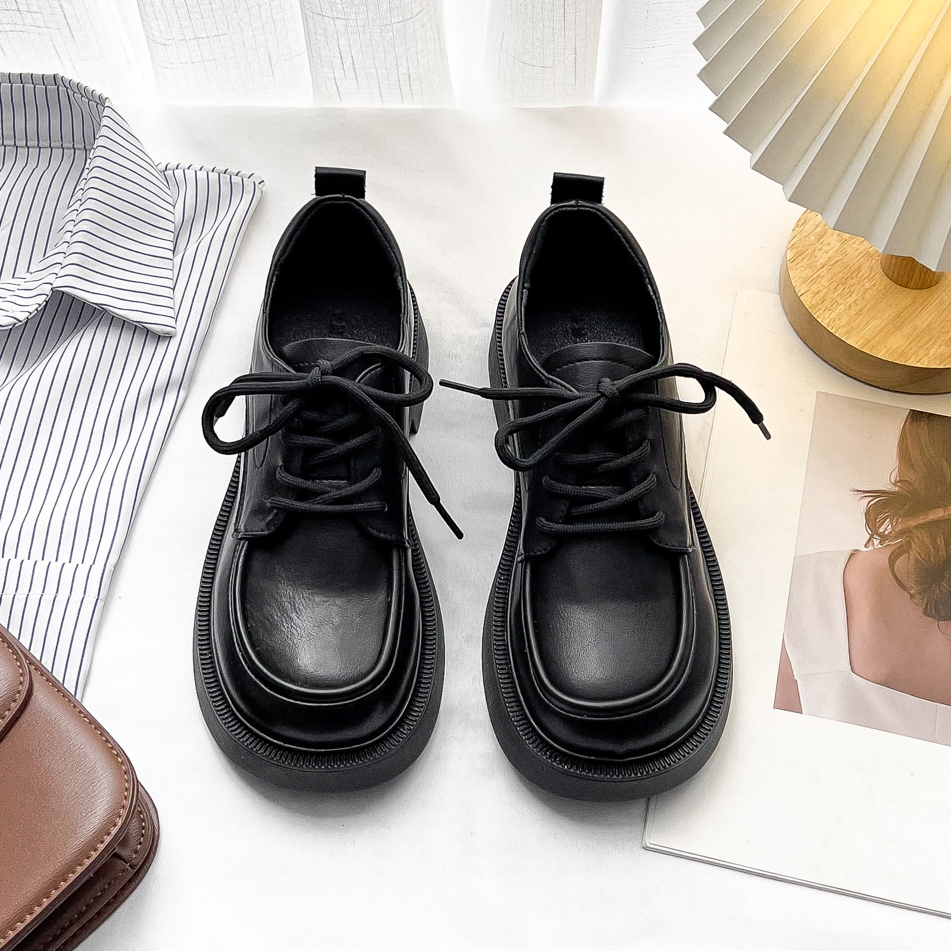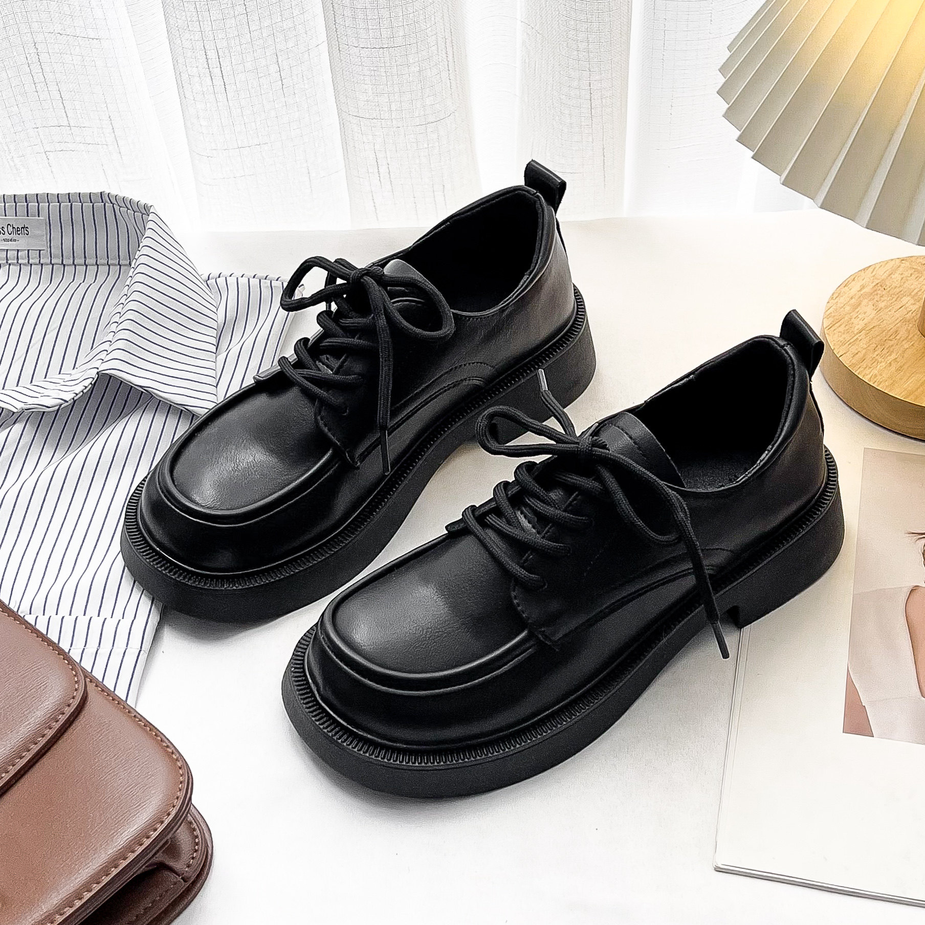 小皮鞋女英伦风平底系带