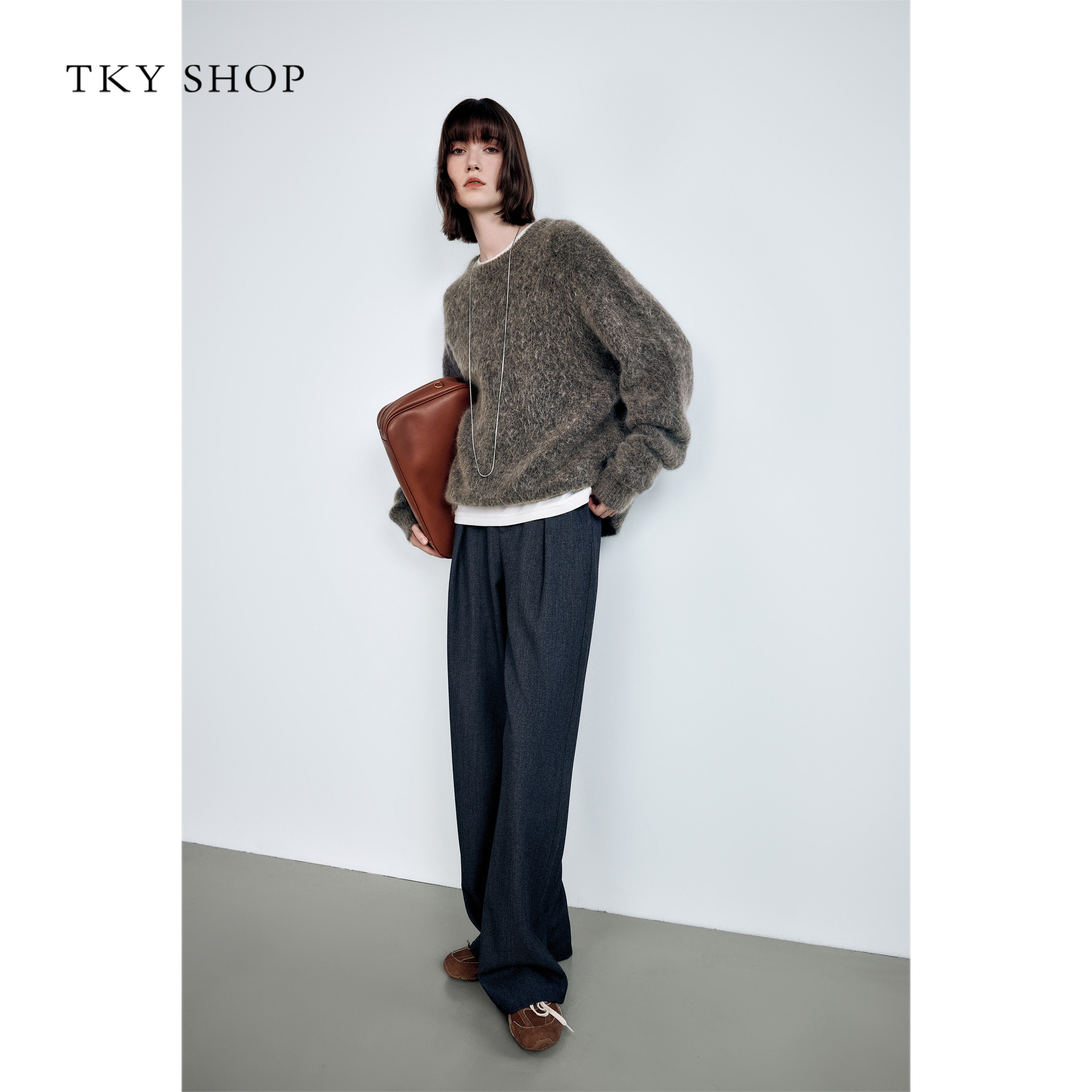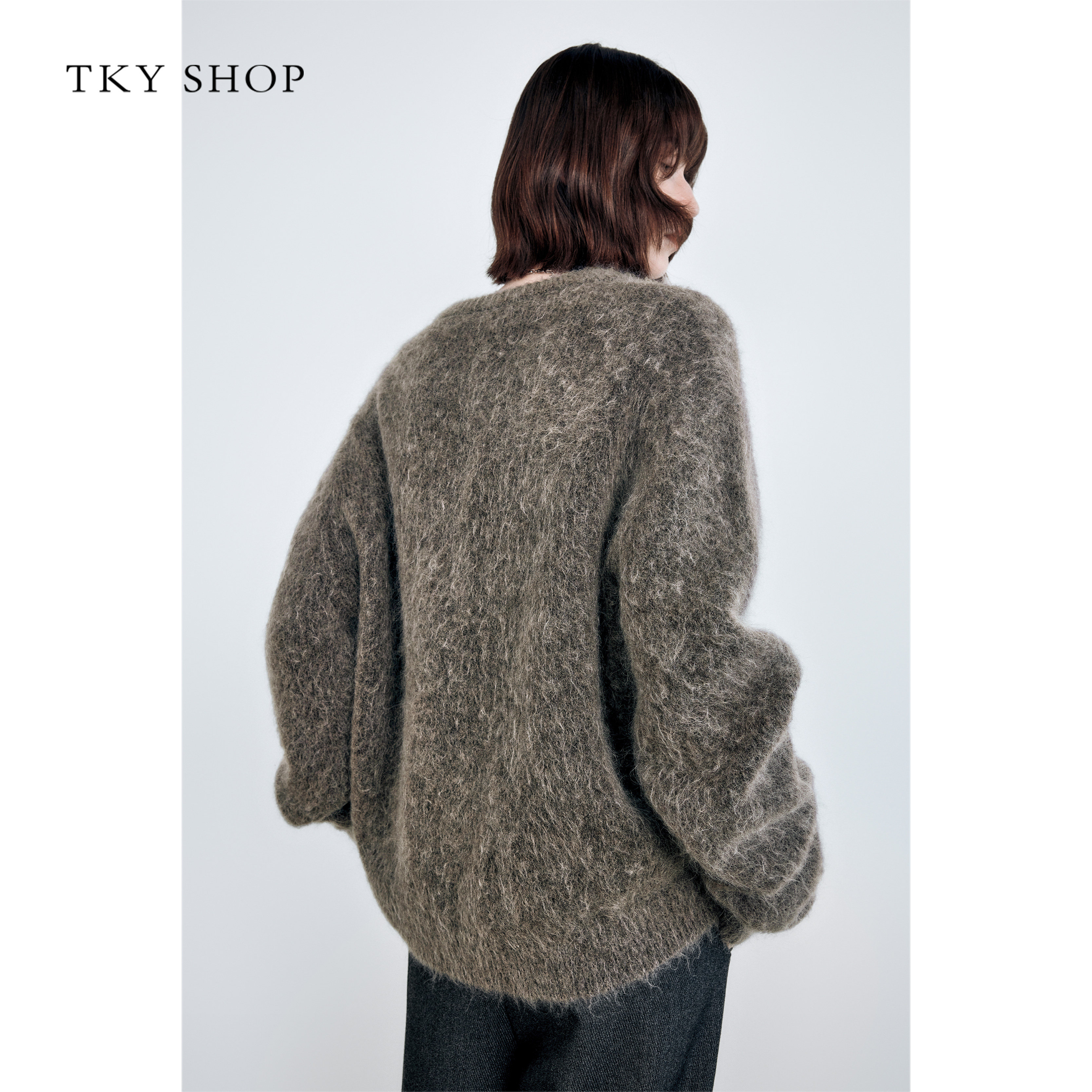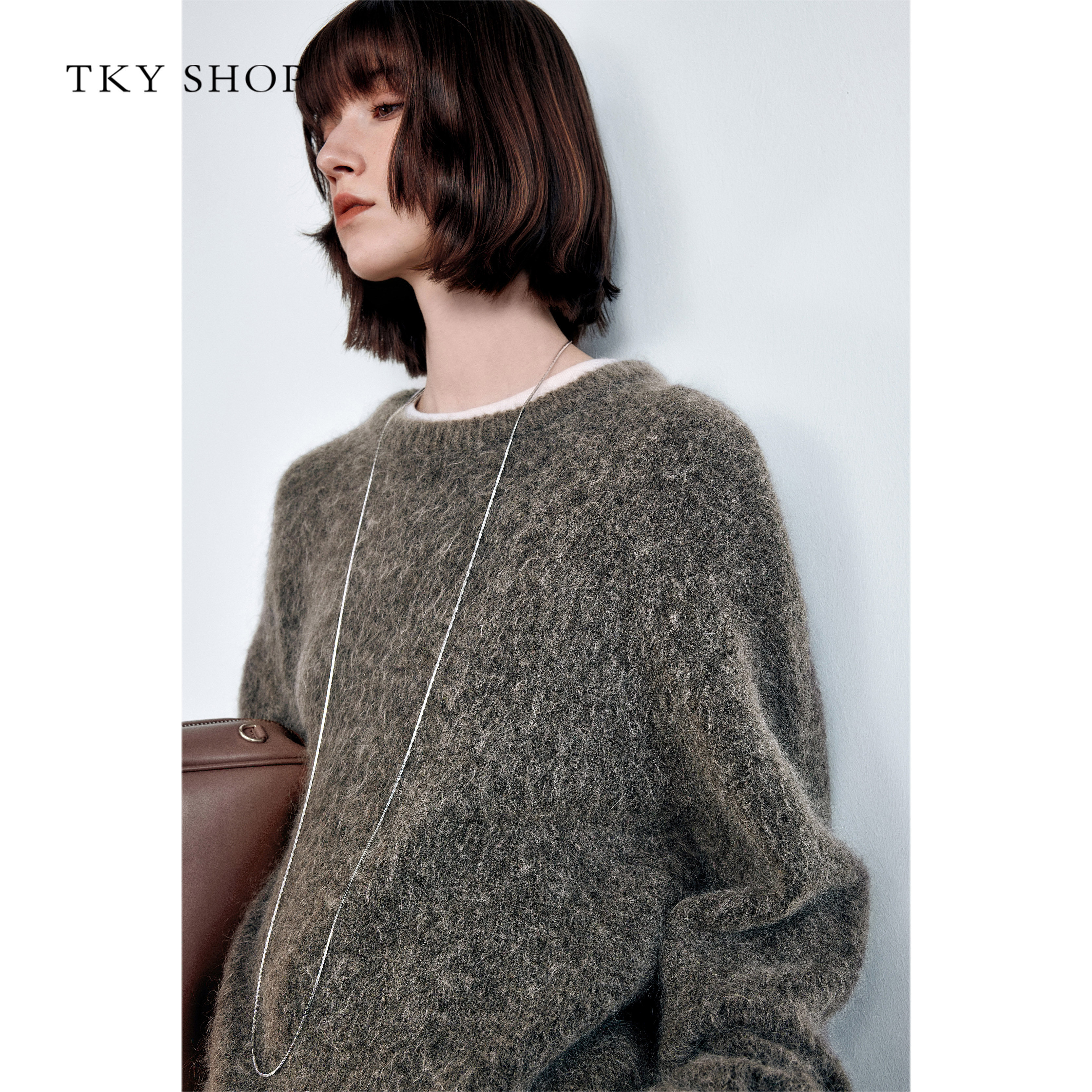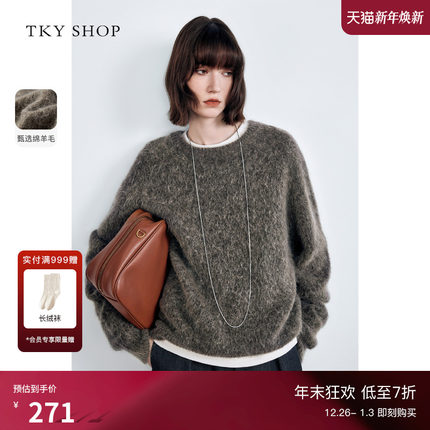 TKY SHOP圆领套头毛针织衫女2025冬季新款毛衣慵懒高级感宽松上衣