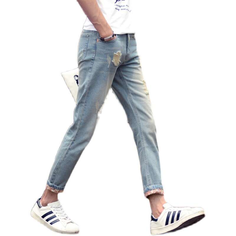 九分牛仔裤男破洞新品春秋