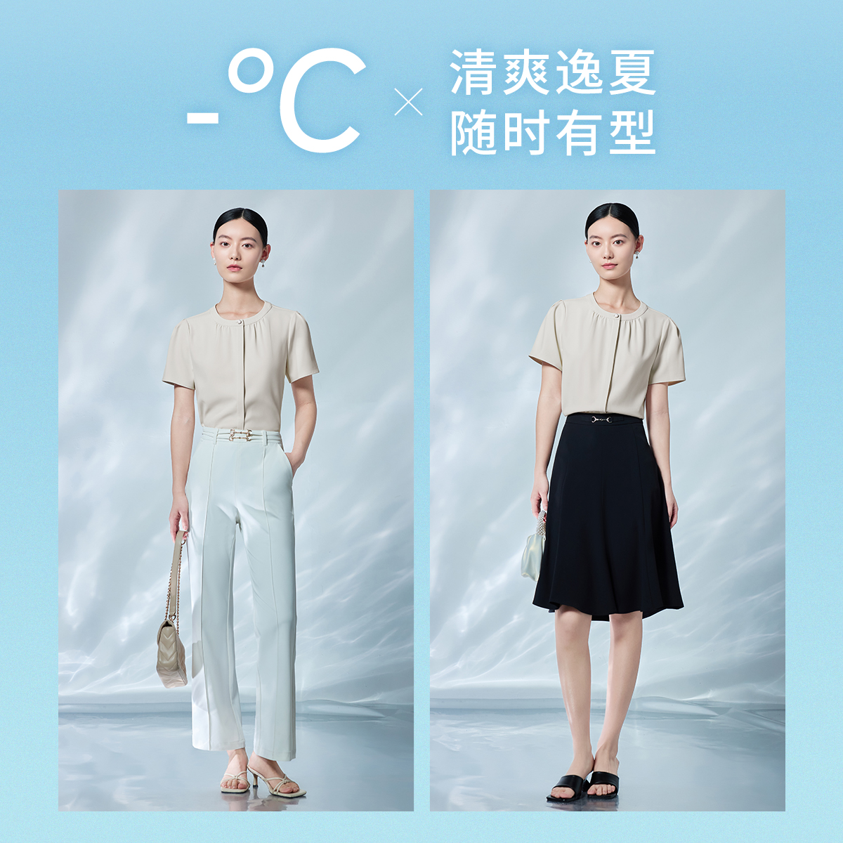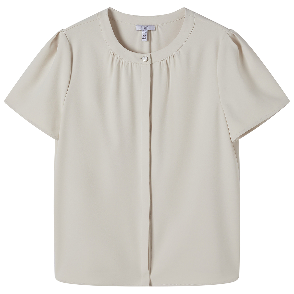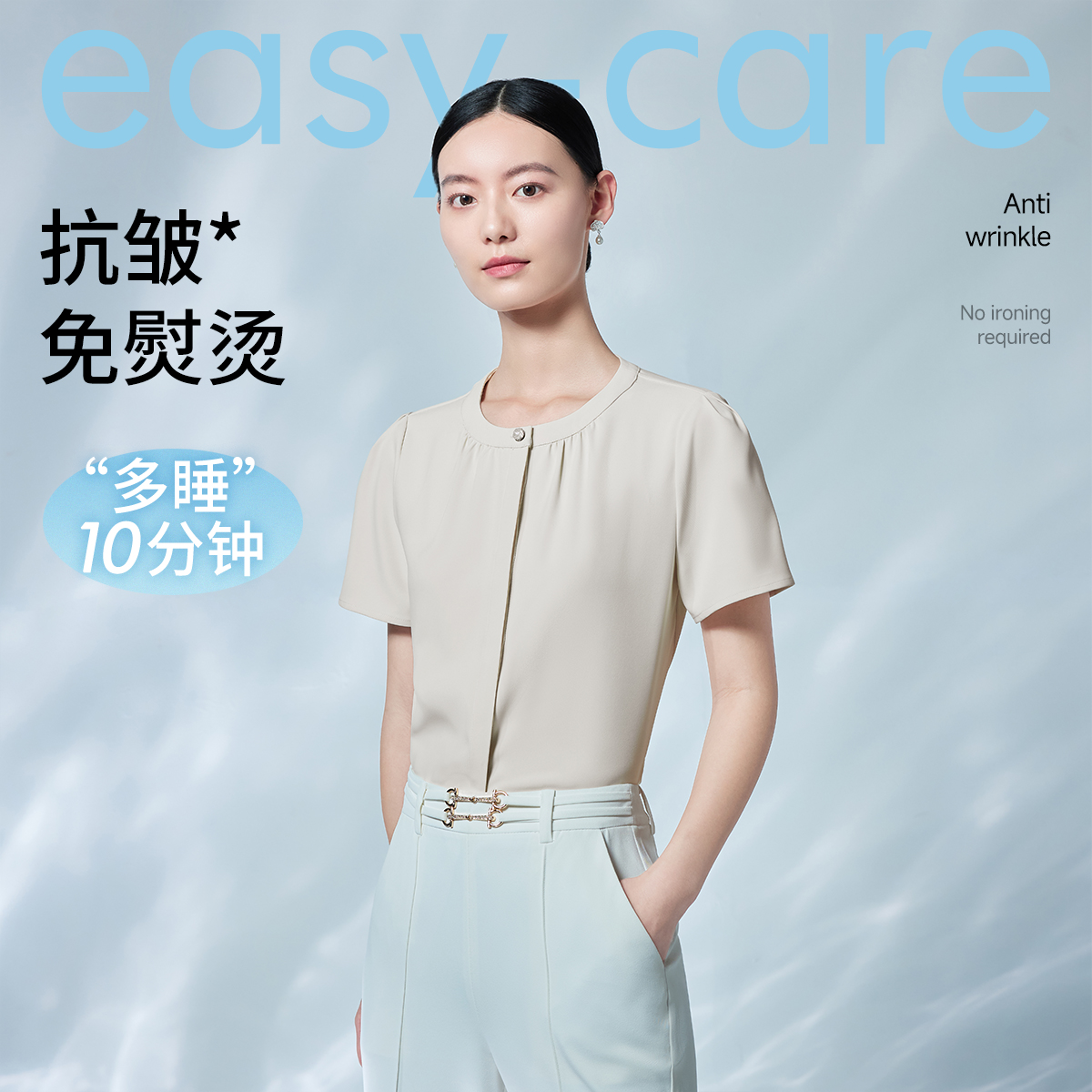 FINITY菲妮迪衬衫2025年夏季新款简约圆领通勤垂感气质短袖上衣女