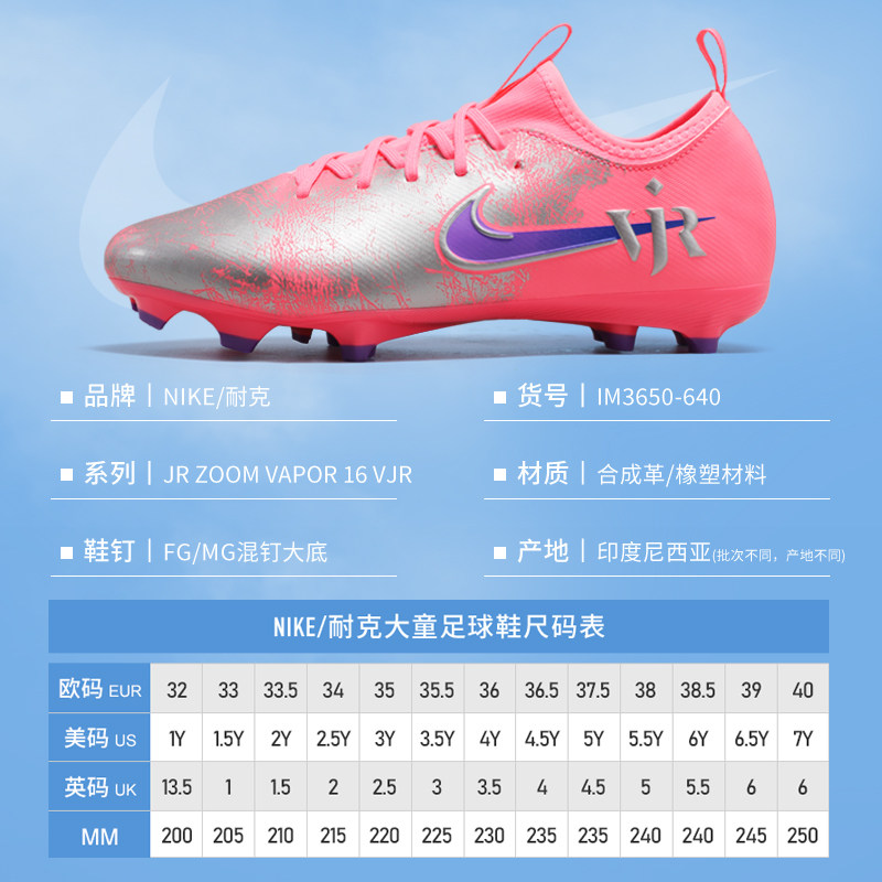 NIKE耐克儿童足球鞋刺客16代中端FG/MG天然人草训练比赛鞋IM3650