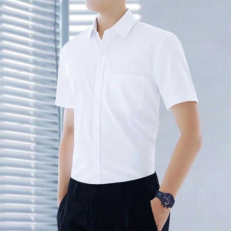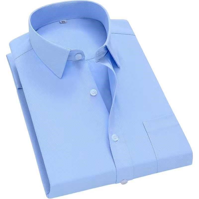 蓝色衬衫男短袖夏季新款商务工装工作服职业装修身正装白衬衣男士