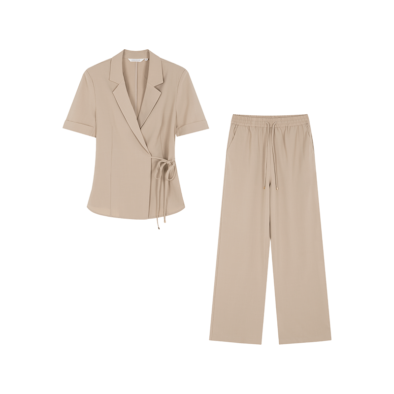 沫晗依美女装上衣裤子两件套2025新款夏新中式系带收腰时尚套装