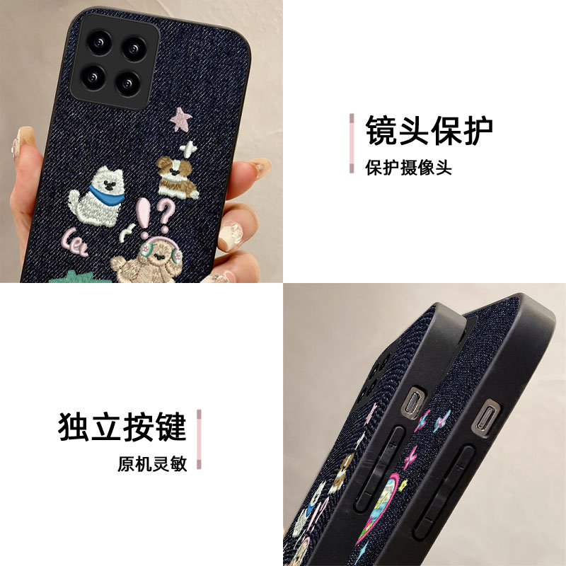 牛仔针织刺绣适用小米14手机壳新款Note11 5G外壳13高级感12网红12turbo女款11T新品10s布艺8保护套14全包9