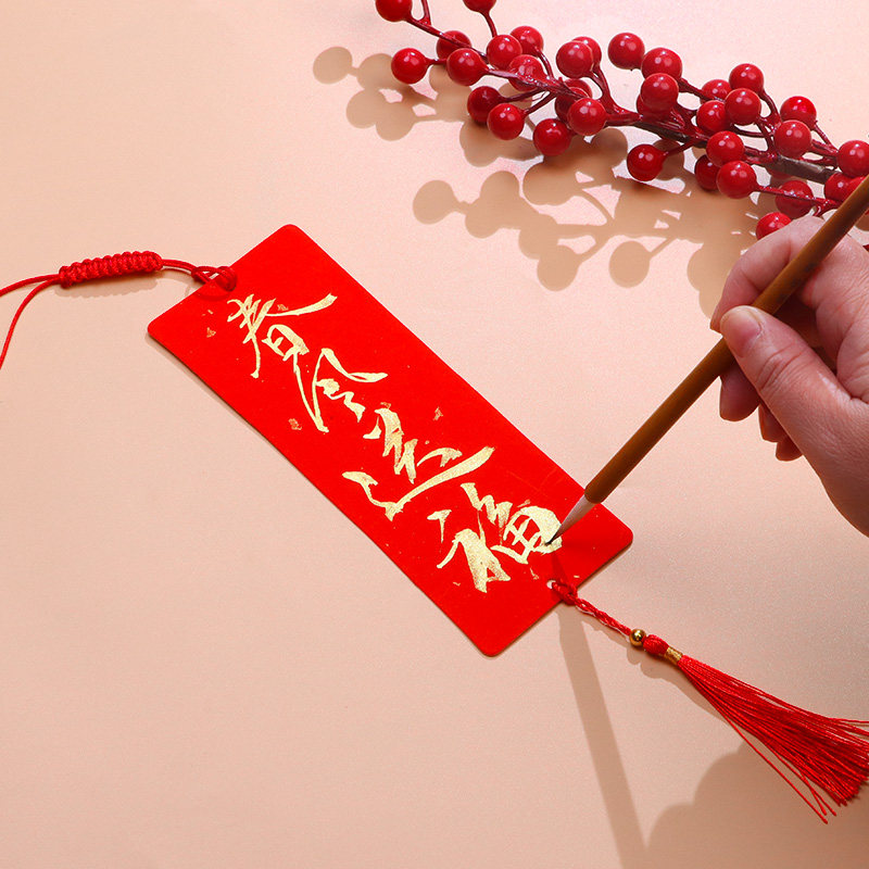 中国风迷你福卡挂件双面万年红宣纸春联纸手写卡纸福字红纸对联专用纸空白书法作品纸喜庆红色书签对联纸挂饰