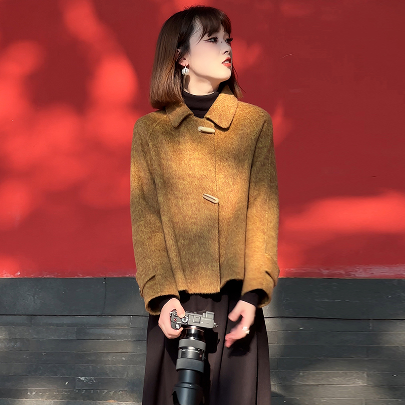 双面羊毛大衣女2025年秋冬新款小个子短款牛角扣呢子外套韩版休闲