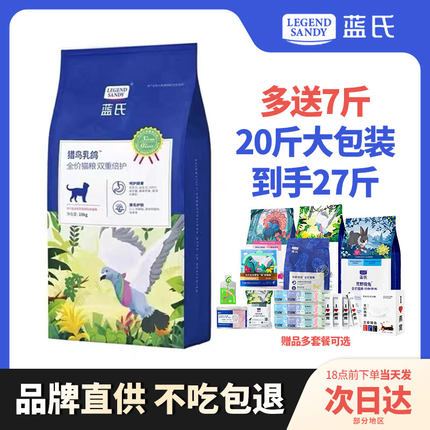 蓝氏猫粮官方旗舰店正品10KG全价猎鸟乳鸽猫粮冻干生骨肉通用猫粮