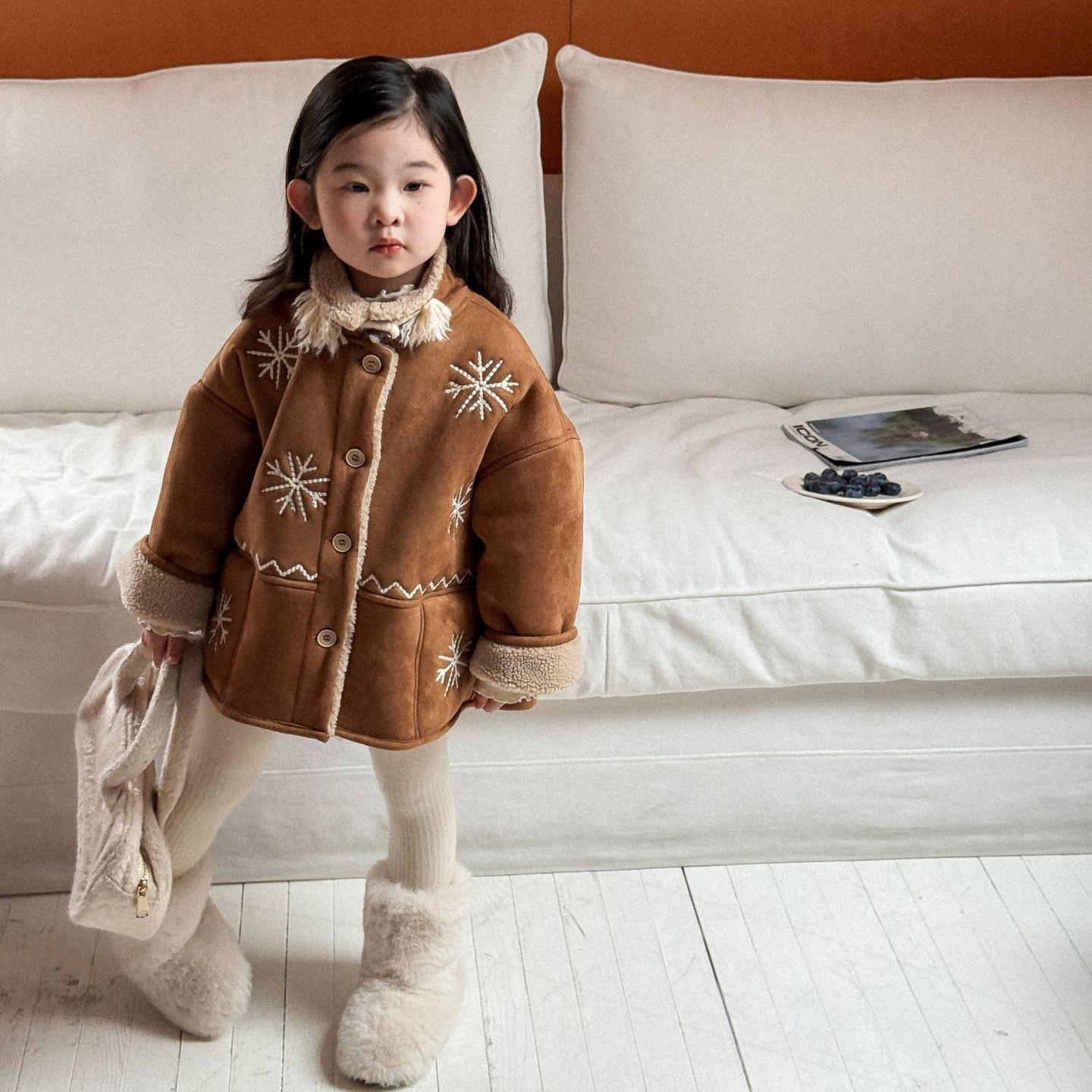女童皮毛一体外套秋冬装2025新款女宝宝洋气时髦儿童加厚保暖上衣