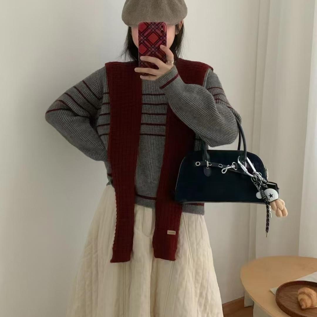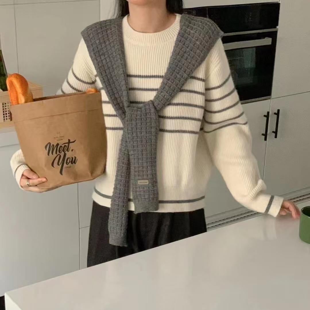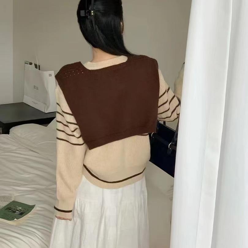 条纹毛衣女冬季2024秋冬新款减龄上衣两件套披肩休闲长袖针织衫潮