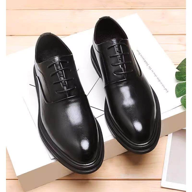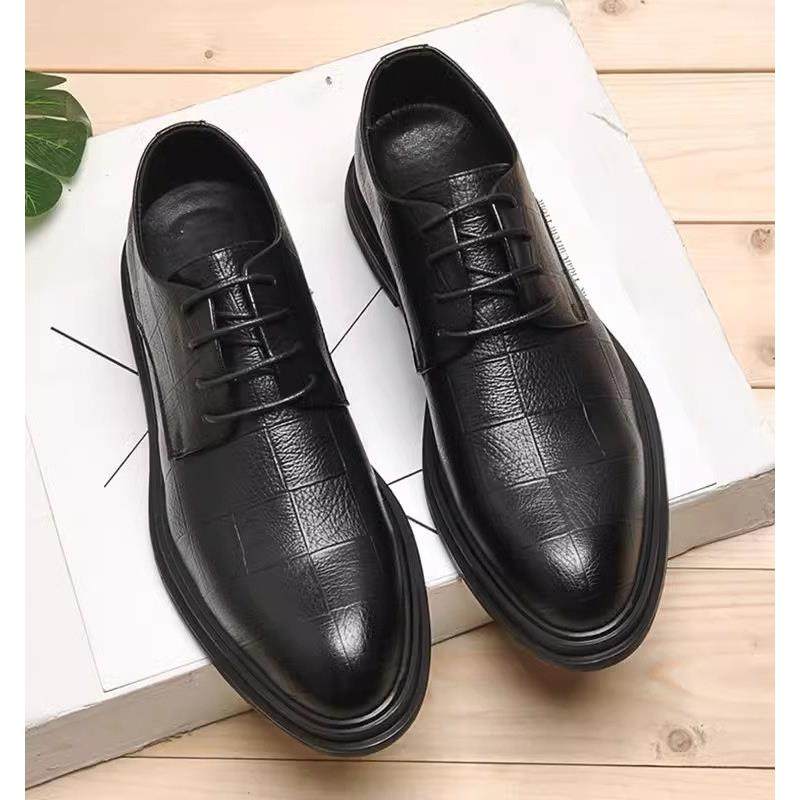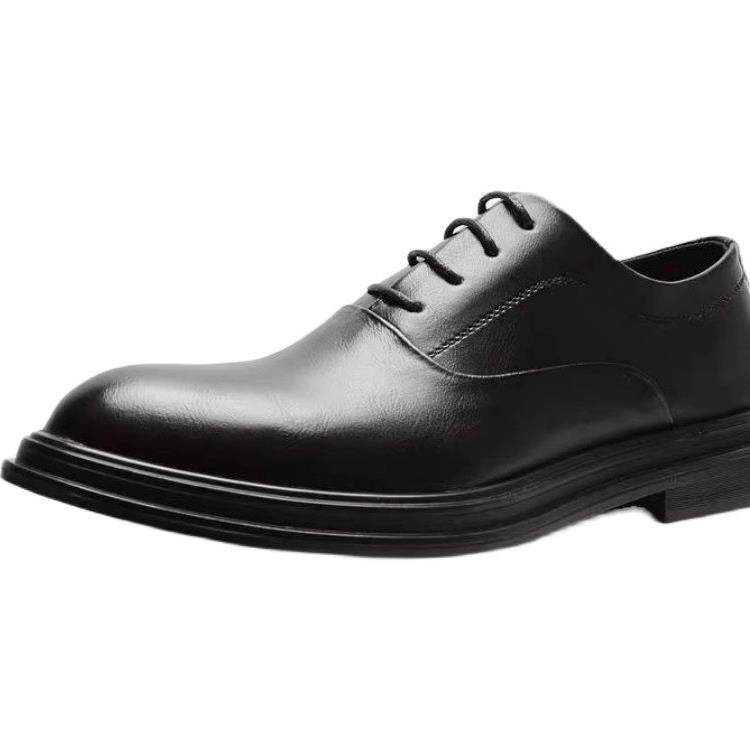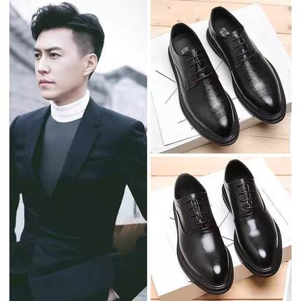 男士商务正装皮鞋春季百搭英伦尖头真皮增高布洛克男鞋新郎结婚鞋