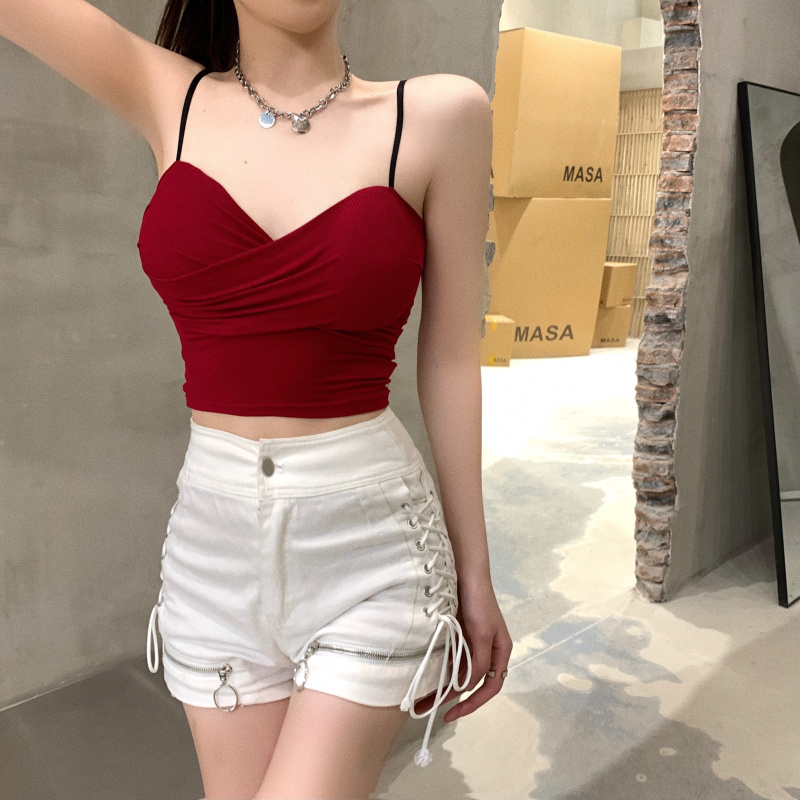 纯棉小吊带带胸垫外穿辣妹上衣露背紧身网红美背背心夏季内搭文胸