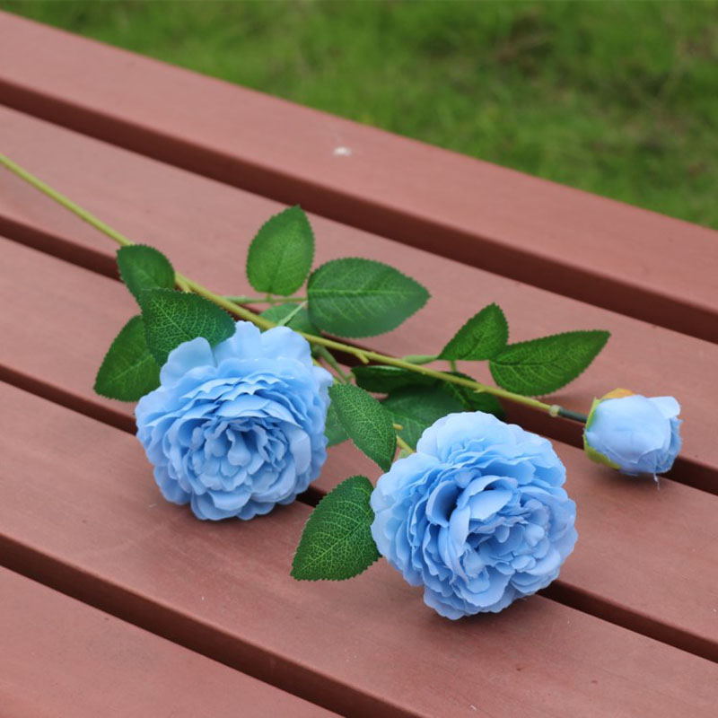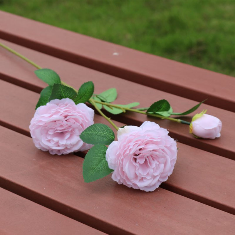 欧式3头洋牡丹仿真花客厅摆放洋玫瑰花墙路引绢花艺布置婚庆装饰