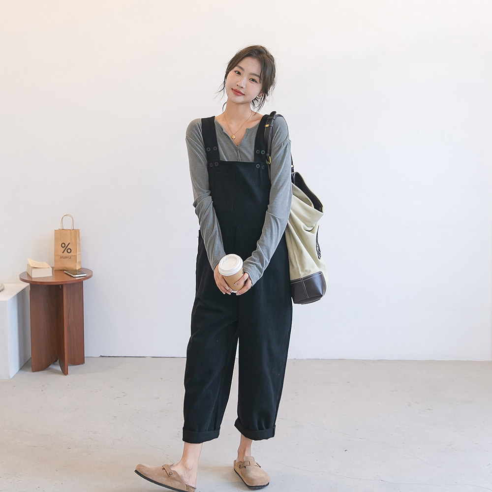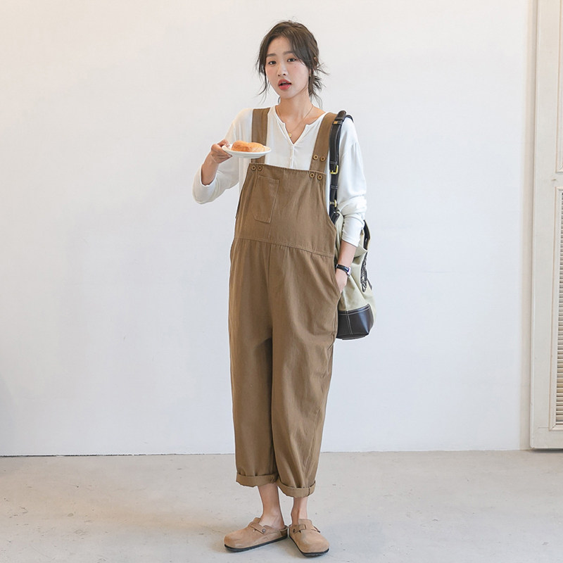 孕妇休闲裤棉布背带裤背带裤+T恤