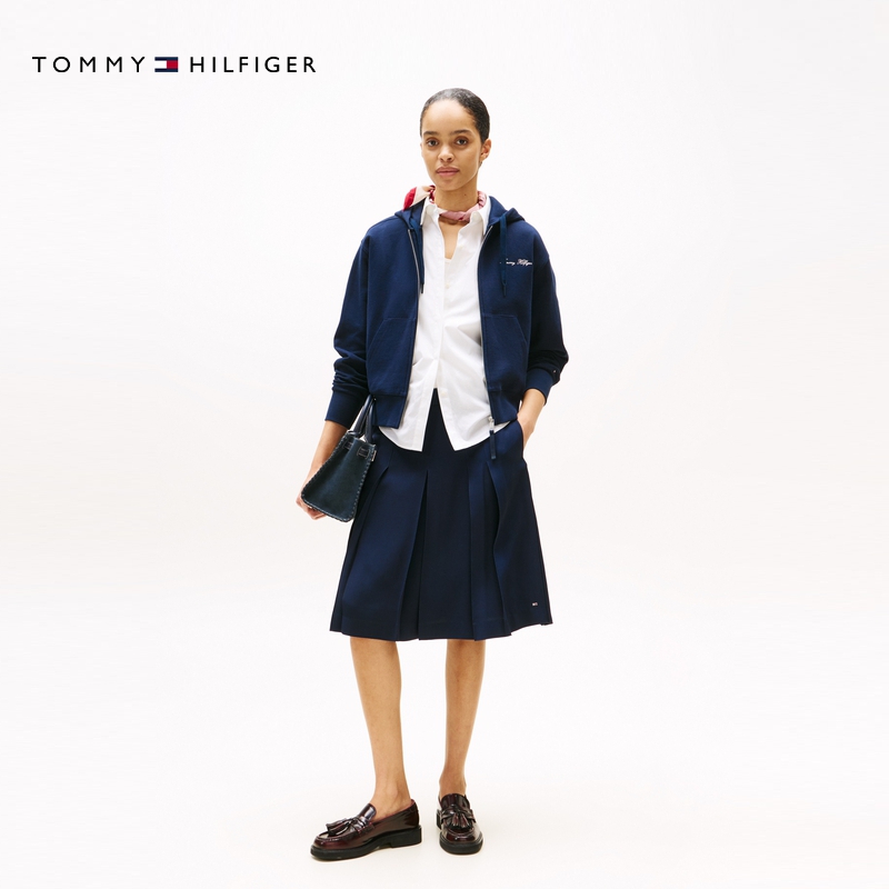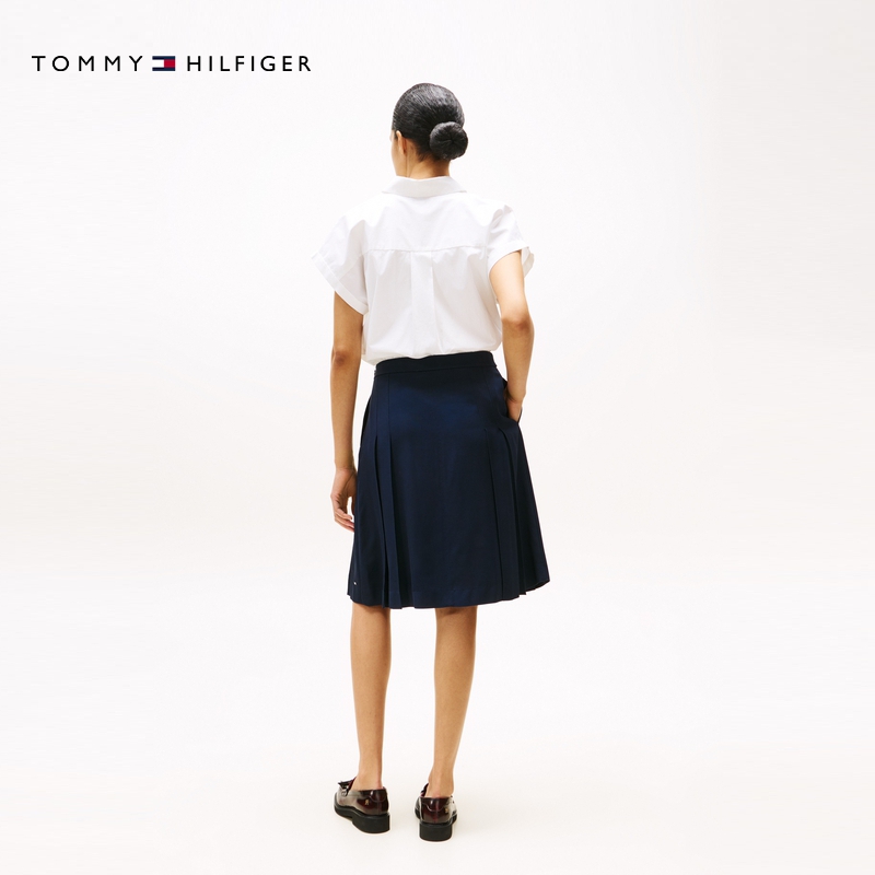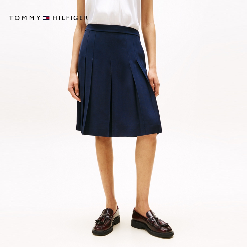 Tommy25秋冬新款女装休闲优雅气质通勤金属小标斜纹百褶裙半身裙