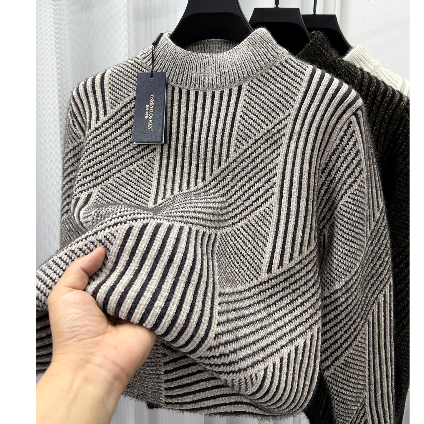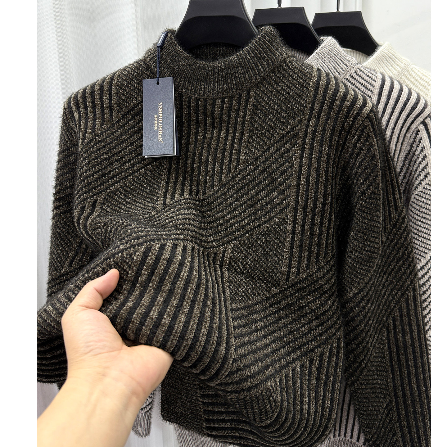 雪尼尔半高领毛衣男士冬季加厚雪貂绒保暖上衣套头内搭针织打底衫