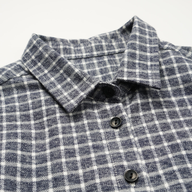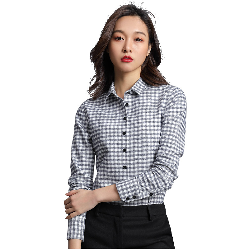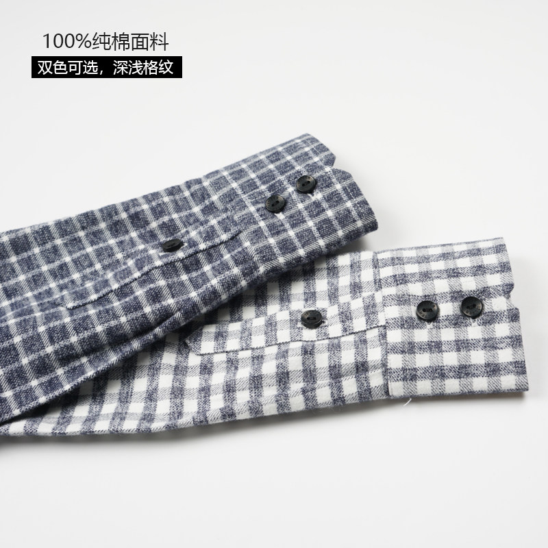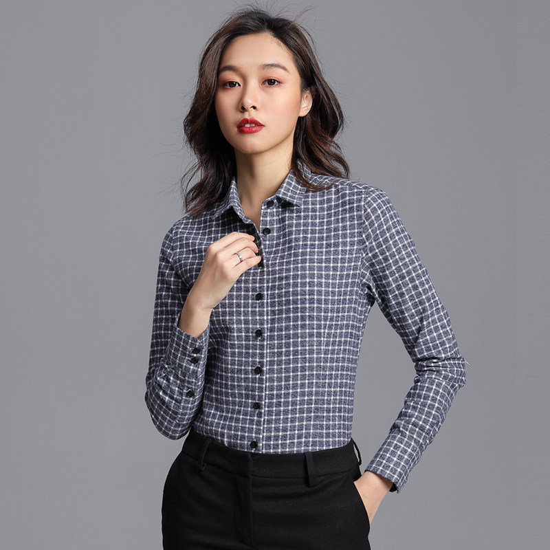 宿色纯棉格子衬衫女秋冬新款内搭上衣磨毛正装厚款全棉打底衬衣