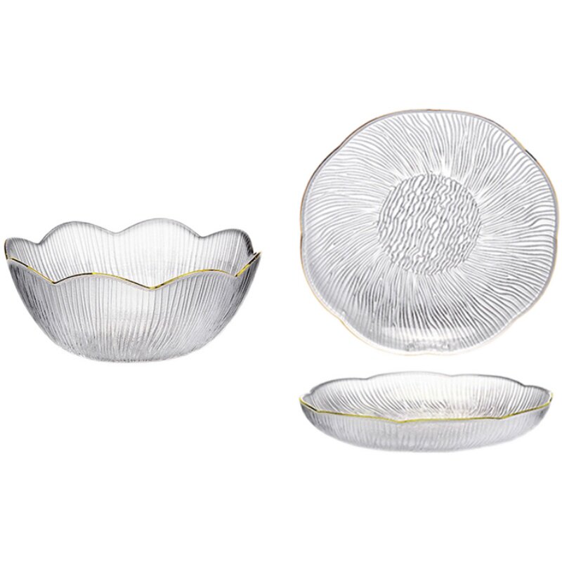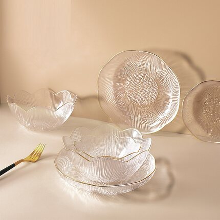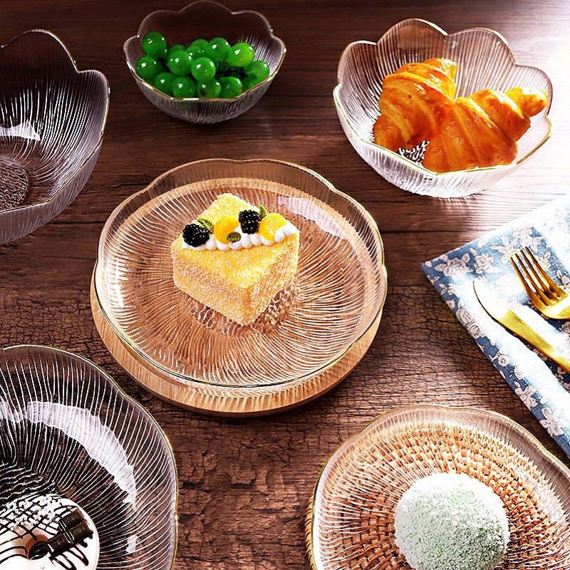 日式金边玻璃水果盘客厅家用简约现代高颜值甜品碗点心糖果零食盘