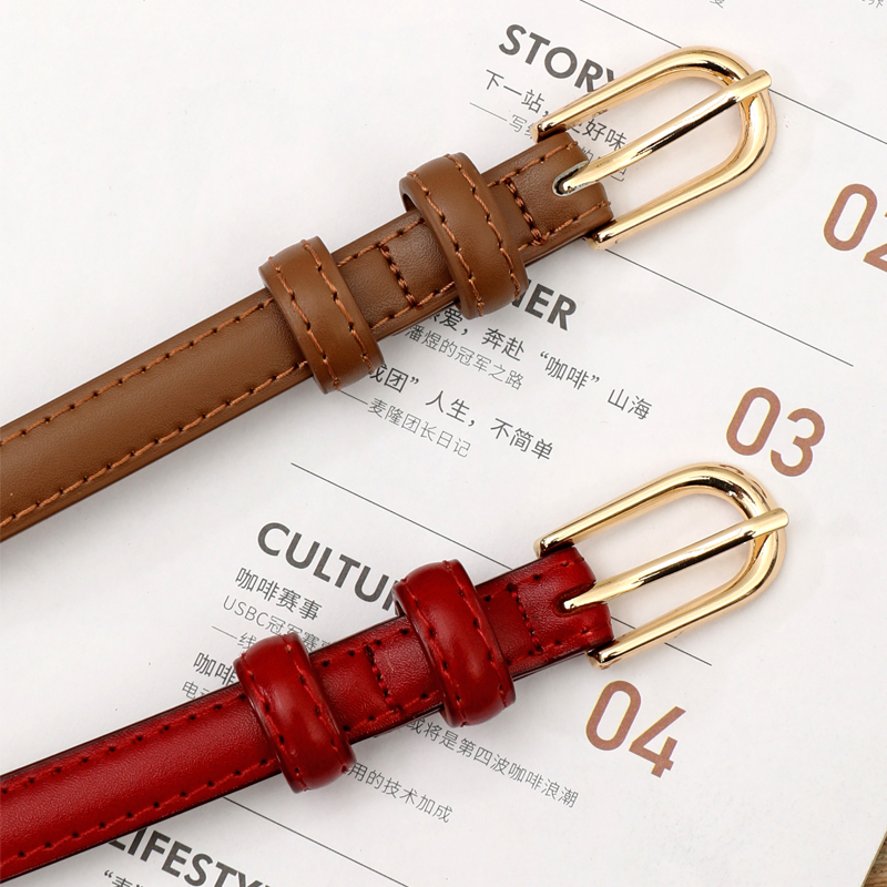 【高品质】100%纯牛皮女式细腰带女士简约窄皮带女款牛仔裤带真皮