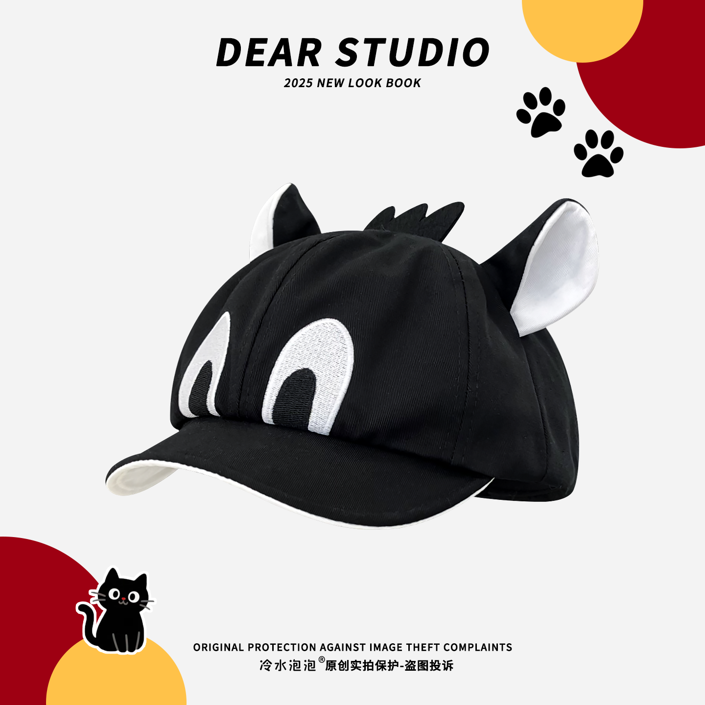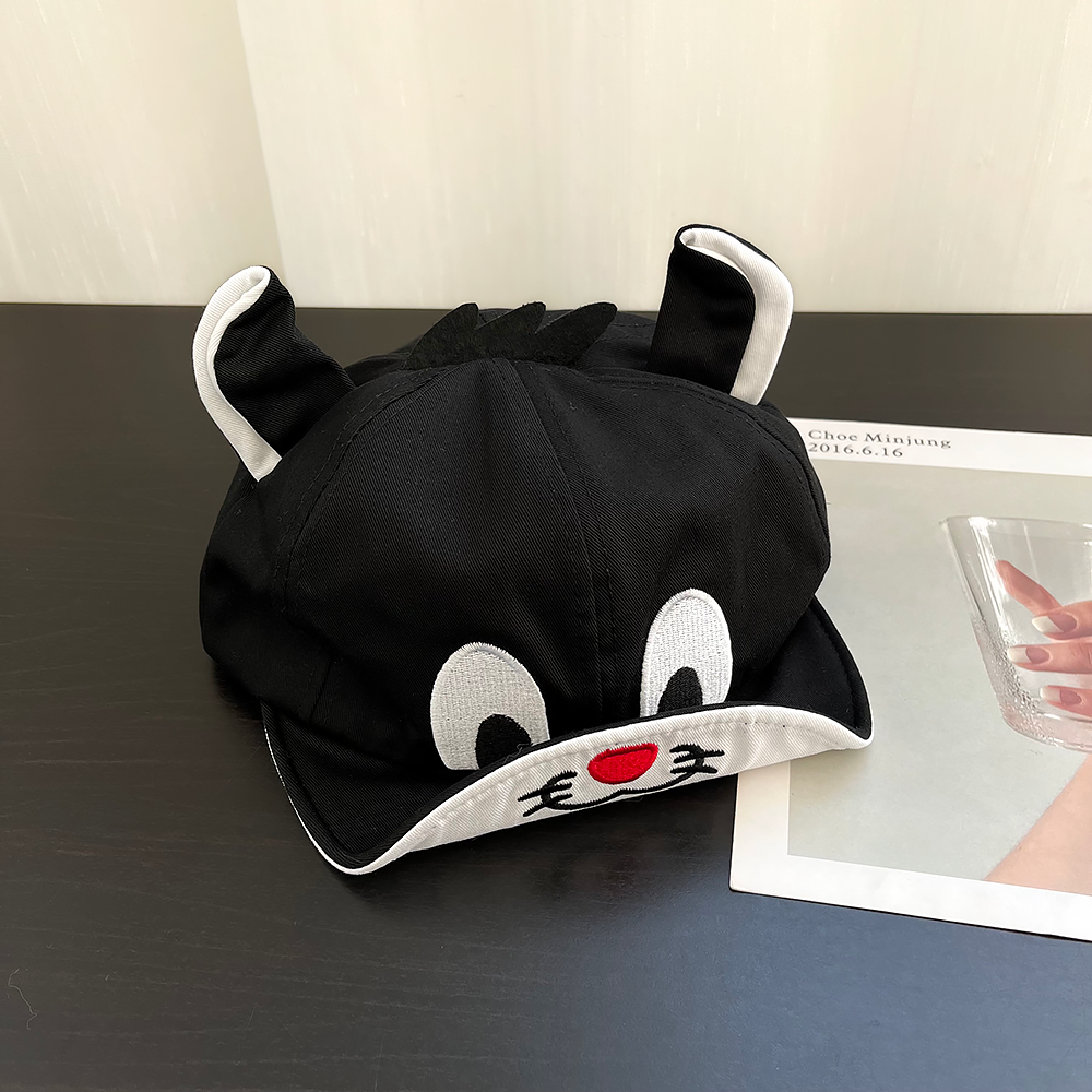 可爱大傻猫韩国黑猫翻檐鸭舌帽子