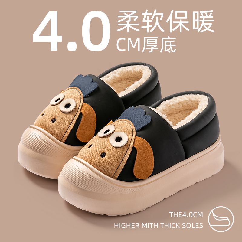 可爱小牛棉拖鞋女士冬季包跟防水2024新款外穿家居防滑保暖棉鞋女